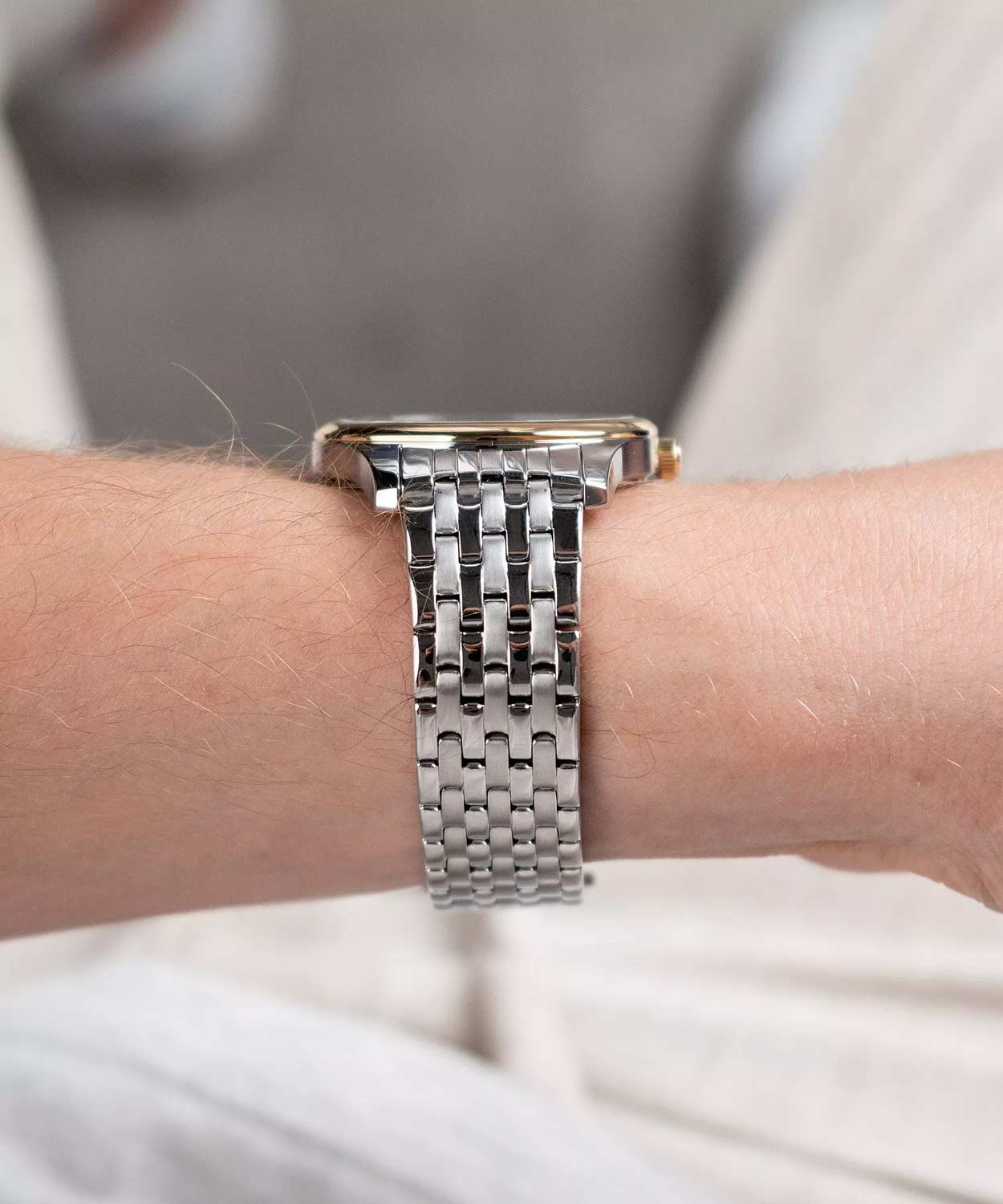 Часы Adriatica A1025.2163Q представляют собой идеальное сочетание элегантности и функциональности, разработанное для современных мужчин. Их стильный циферблат защищен сапфировым стекломСапфировое стеклоПрочный и надёжный материал из кристалла сапфира синтетического происхождения, характеризующийся особой твёрдостью и устойчивостью к царапинам и повреждениям., что придает дополнительную устойчивость к царапинам. Корпус из нержавеющей стали подчеркивает их изысканность и долговечность. Надежный кварцевый механизм с калибром RONDA 517 гарантирует точность времени, а водозащита WR 50 (5 ATM) обеспечивает защиту от воды в различных условиях. Браслет из нержавеющей стали с раскладной застёжкойРаскладная застёжкаТакой тип застёжки используется только на браслетах из металла. Она никогда не раскрывается полностью, происходит разделение на 2 и более частей. Раскладывающая застёжка снизит вероятность потери часов к минимуму., гармонично дополняет общий дизайн и обеспечивает комфортное ношение на запястье. Окошко даты находится в положении 3 часа. День недели отображается в положении 6 часов. БезельБезельВнешний ободок, закрепляющий стекло. В спортивных часах так называется поворотное кольцо с делениями на циферблате, выполняет роль таймера – замеряет отрезки времени на шкале. Неподвижный безель – элемент декора. Однонаправленно вращающийся безель на дайверских часах позволяет фиксировать моменты погружения и выныривания на поверхность. с PVD-покрытиемPVDУльтратонкое покрытие наносится в технике вакуумного напыления, сочетает в себе нитрид титана особой прочности со слоем золота или оксида хрома. Несёт в себе декоративную или защитную функцию..