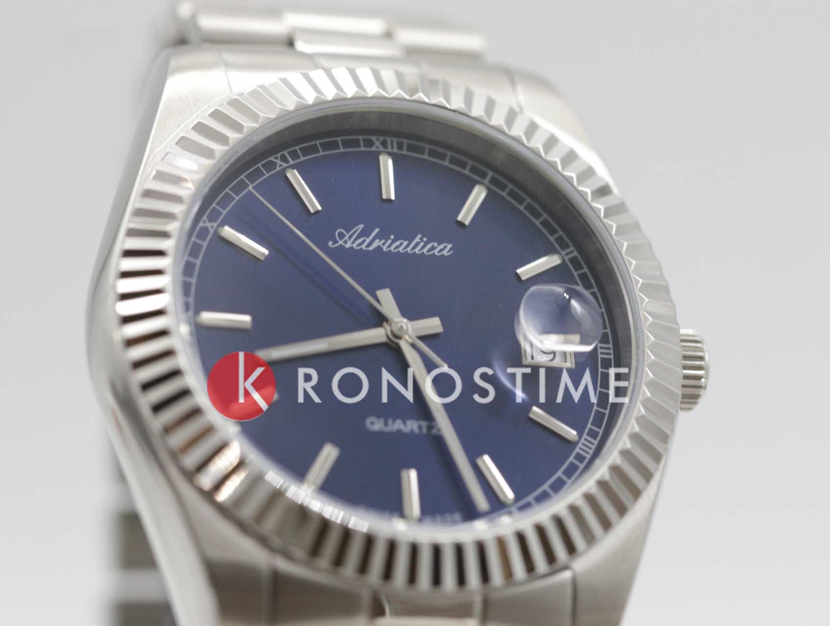 Часы Adriatica A1090.5115Q воплощают в себе классический стиль и надежность, идеально подходящие для современных мужчин. Их синий циферблат, защищенный минеральным стекломМинеральное стеклоМинеральное стекло представляет собой искусственно выращенный минерал кварца. Такое стекло отличается особой устойчивостью к повреждениям и царапинам. Уступает по некоторым качествам сапфировому стеклу., заключен в корпус из прочной нержавеющей стали. Надежный кварцевый механизм с калибром RONDA 515 обеспечивает точность, а водозащита уровня WR 50 (5 ATM) делает их устойчивыми к воздействию воды. Стальной браслет с раскладной застёжкойРаскладная застёжкаТакой тип застёжки используется только на браслетах из металла. Она никогда не раскрывается полностью, происходит разделение на 2 и более частей. Раскладывающая застёжка снизит вероятность потери часов к минимуму. подчеркивает элегантный стиль и комфортно сидит на запястье. Часы оснащены функцией отображения даты в окошке в положении 3 часа, что добавляет практичности в повседневной жизни. Люминесцентное покрытиеЛюминесцентное покрытиеПозволяет считывать показания времени в темноте. Производители наносят на стрелки, часовые индексы, безель или поверхность циферблата светонакопительный состав, дающий холодное свечение. на стрелках и метках обеспечивает отличную видимость в темноте.