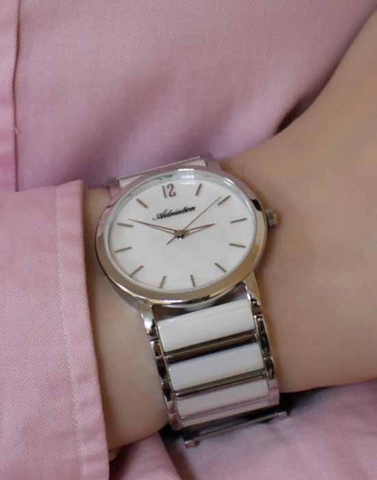 Часы Adriatica A3721.C15FQ воплощают в себе утонченную элегантность и надежность, идеально подходящие для современных женщин. Выполненные в Швейцарии, они оснащены высокоточным кварцевым механизмом с калибром RONDA 763, который обеспечивает безупречную точность хода. Корпус из нержавеющей стали диаметром 36 мм и толщиной 7 мм, что придаёт ему утончённый и современный вид. Белый перламутровый корпус защищает минеральное стеклоМинеральное стеклоМинеральное стекло представляет собой искусственно выращенный минерал кварца. Такое стекло отличается особой устойчивостью к повреждениям и царапинам. Уступает по некоторым качествам сапфировому стеклу., придающее часам изысканный вид, а водозащита 3 ATM гарантирует защиту от случайных брызг. Браслет из нержавеющей стали с белыми биокерамическимиБиокерамикаБиокерамика — это материал, который на две трети состоит из керамики, на одну треть — из биопластика. Он сочетает в себе лучшие качества обоих материалов и обладает прочностью и шелковистой на ощупь текстурой. вставками, обеспечивает комфорт и долговечность, а ювелирная застежка добавляет дополнительный штрих к утонченности дизайна. Часы весят всего 80 грамм, что делает их практически невесомыми на запястье, обеспечивая комфорт в течение всего дня. Эти часы станут идеальным дополнением к любому образу, подчеркивая индивидуальный стиль и вкус их обладательницы.