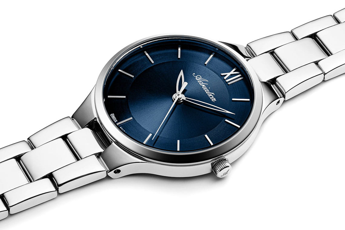Женские кварцевые часы Adriatica A3823.5165Q — это элегантный аксессуар швейцарского производства с корпусом круглой формы из нержавеющей стали серебристого цвета. Циферблат синего цвета оформлен с эффектом «солнечных лучей» (Sunray) и дополнен центральной секундной стрелкой. Защиту обеспечивает минеральное стеклоМинеральное стеклоМинеральное стекло представляет собой искусственно выращенный минерал кварца. Такое стекло отличается особой устойчивостью к повреждениям и царапинам. Уступает по некоторым качествам сапфировому стеклу.. Браслет из нержавеющей стали фиксируется на раскладной застёжкеРаскладная застёжкаТакой тип застёжки используется только на браслетах из металла. Она никогда не раскрывается полностью, происходит разделение на 2 и более частей. Раскладывающая застёжка снизит вероятность потери часов к минимуму.. Механизм — кварцевый. Водонепроницаемость 30 метров, позволит защитить корпус от случайных брызг или капель дождя.