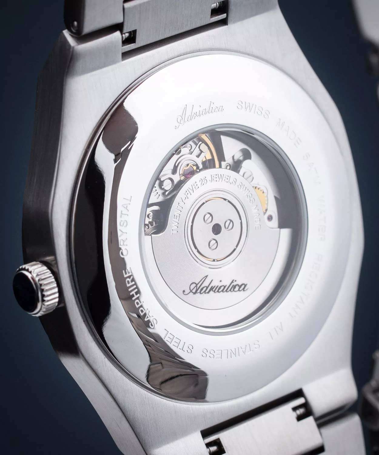 Часы Adriatica Premiere A8326.5115A воплощают в себе элегантность и функциональность, идеально подходящие для современных мужчин, ценящих швейцарское качество. Их синий циферблат защищенный сапфировым стекломСапфировое стеклоПрочный и надёжный материал из кристалла сапфира синтетического происхождения, характеризующийся особой твёрдостью и устойчивостью к царапинам и повреждениям., заключен в корпус из нержавеющей стали диаметром 40 мм и толщиной 10 мм. Эти механические часы с автоподзаводом имеют калибр Ronda 150, который обеспечивает высокую точность, а водозащита 5 ATM делает часы устойчивыми к воздействию воды. Стальной браслет с раскладной застёжкойРаскладная застёжкаТакой тип застёжки используется только на браслетах из металла. Она никогда не раскрывается полностью, происходит разделение на 2 и более частей. Раскладывающая застёжка снизит вероятность потери часов к минимуму. обеспечивает комфортное и надежное ношение. Часы оснащены функцией отображения даты в окошке в положении 3 часа, что добавляет практичности в повседневной жизни. Люминесцентное покрытиеЛюминесцентное покрытиеПозволяет считывать показания времени в темноте. Производители наносят на стрелки, часовые индексы, безель или поверхность циферблата светонакопительный состав, дающий холодное свечение. на стрелках и метках обеспечивает отличную видимость в темноте.