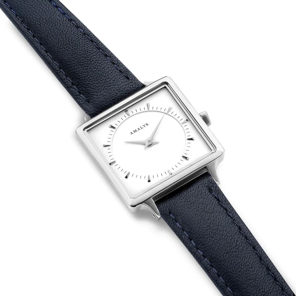 Amalys AMW-008 — женская модель с утончённой минималистичной эстетикой, где квадратный корпус размером 25 мм подчёркивает современный характер и чистоту линий. Механизм — точный кварцевый, обеспечивающий стабильный ход и надёжность в повседневном использовании. Поверхность циферблата оформлена в лаконичном стиле с тонкими метками и стрелками, создающими гармонию и визуальную лёгкость. Защитную функцию выполняет минеральное стеклоМинеральное стеклоМинеральное стекло представляет собой искусственно выращенный минерал кварца. Такое стекло отличается особой устойчивостью к повреждениям и царапинам. Уступает по некоторым качествам сапфировому стеклу., устойчивое к механическим воздействиям и сохраняющее читаемость при ежедневной носке. Кожаный ремешок на стандартной застежке а, его гибкая структура обеспечивает комфортное прилегание к запястью и визуальную утончённость. Единство корпуса и ремешка создаёт целостный образ, а изысканная простота дизайна делает модель универсальной — она одинаково уместна и в деловой обстановке, и в повседневных сочетаниях.