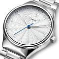 Amalys AMW-156 — женская модель с утончённым современным дизайном, в которой сочетаются минимализм и элегантность. Круглый корпус диаметром 31 мм в серебристом цвете гармонирует с браслетом шириной 16 мм, выполненным из нержавеющей стали и оснащённым раскладным замкомРаскладной замокДанный вариант застежки используется только на часах с металлическим браслетом. Отличительная особенность такого крепления в том, что длина браслета становится универсальной и вы можете самостоятельно отрегулировать нужный вам размер – застежка просто двигается по браслету часов., обеспечивающим удобство и надёжность при носке. Механизм — кварцевый, что гарантирует точный и стабильный ход. Защитную функцию выполняет сапфировое стеклоСапфировое стеклоПрочный и надёжный материал из кристалла сапфира синтетического происхождения, характеризующийся особой твёрдостью и устойчивостью к царапинам и повреждениям., стойкое к царапинам и сохраняющее прозрачность. Водозащита 5 ATM делает модель устойчивой к случайным брызгам и кратковременному контакту с водой. Лаконичный циферблат с декоративным узором и изящными стрелками подчёркивает изысканный характер часов, создавая универсальный образ, подходящий как для повседневных ситуаций, так и для особых случаев.