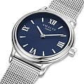 Amalys AMW-166 — женская модель с утончённым классическим дизайном, в которой сочетаются элегантность и практичность. Круглый корпус диаметром 28 мм выполнен из нержавеющей стали, гармонирующим с браслетом шириной 14 мм в том же исполнении. Защитную функцию выполняет сапфировое стеклоСапфировое стеклоПрочный и надёжный материал из кристалла сапфира синтетического происхождения, характеризующийся особой твёрдостью и устойчивостью к царапинам и повреждениям., стойкое к царапинам и сохраняющее прозрачность. Механизм — кварцевый, обеспечивающий точность и стабильность хода. Браслет миланского плетения снабжён раскладным замкомРаскладной замокДанный вариант застежки используется только на часах с металлическим браслетом. Отличительная особенность такого крепления в том, что длина браслета становится универсальной и вы можете самостоятельно отрегулировать нужный вам размер – застежка просто двигается по браслету часов., который сочетает надёжность фиксации и удобство повседневного использования. Водозащита 5 ATM защищает часы от случайных брызг и дождя. Циферблат с римскими индексами и изящными стрелками подчёркивает классическую эстетику модели, делая её уместной как в повседневных образах, так и в торжественной обстановке.