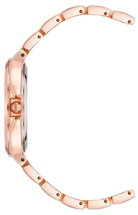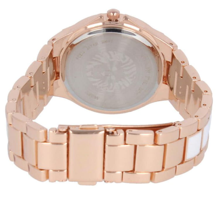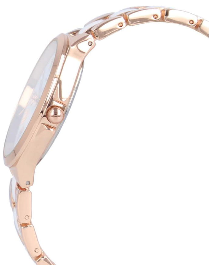 Женские американские часы с минеральным стекломМинеральное стеклоМинеральное стекло представляет собой искусственно выращенный минерал кварца. Такое стекло отличается особой устойчивостью к повреждениям и царапинам. Уступает по некоторым качествам сапфировому стеклу. Anne Klein Metals 3922WTRG, кварцевый механизм с высокой точностью. Класс водозащиты: 30 метров, позволит защитить корпус от случайных брызг или капель дождя. Корпус часов изготовлен из стали с PVD-покрытиемPVDУльтратонкое покрытие наносится в технике вакуумного напыления, сочетает в себе нитрид титана особой прочности со слоем золота или оксида хрома. Несёт в себе декоративную или защитную функцию.. Стальной браслет на раскладной застёжкеРаскладная застёжкаТакой тип застёжки используется только на браслетах из металла. Она никогда не раскрывается полностью, происходит разделение на 2 и более частей. Раскладывающая застёжка снизит вероятность потери часов к минимуму. с PVD-покрытиемPVDУльтратонкое покрытие наносится в технике вакуумного напыления, сочетает в себе нитрид титана особой прочности со слоем золота или оксида хрома. Несёт в себе декоративную или защитную функцию. и эмалевыми вставками.
