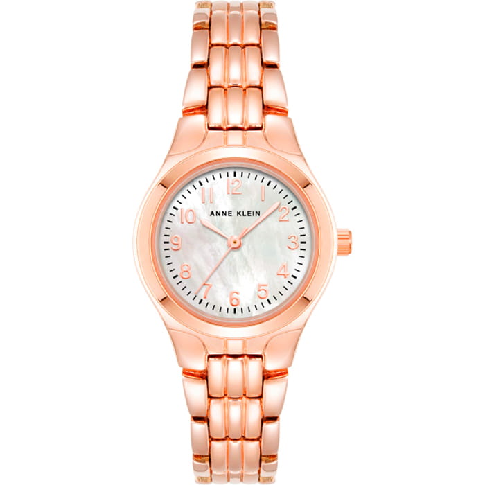 Женские американские часы с минеральным стекломМинеральное стеклоМинеральное стекло представляет собой искусственно выращенный минерал кварца. Такое стекло отличается особой устойчивостью к повреждениям и царапинам. Уступает по некоторым качествам сапфировому стеклу. Anne Klein Metals 5490MPRG, кварцевый механизм с высокой точностью. Класс водозащиты: 30 метров, позволит защитить корпус от случайных брызг или капель дождя. Корпус часов изготовлен из стали с IP-покрытиемIP-покрытиеМетод ионного напыления. Демонстрирует повышенную устойчивость к истиранию, окислению и химическим веществам. Под воздействием высокого давления и температуры около 1500°C молекулы металла надёжно соединяются с частицами корпуса часов.. Стальной браслет на раскладной застёжкеРаскладная застёжкаТакой тип застёжки используется только на браслетах из металла. Она никогда не раскрывается полностью, происходит разделение на 2 и более частей. Раскладывающая застёжка снизит вероятность потери часов к минимуму. с IP-покрытиемIP-покрытиеМетод ионного напыления. Демонстрирует повышенную устойчивость к истиранию, окислению и химическим веществам. Под воздействием высокого давления и температуры около 1500°C молекулы металла надёжно соединяются с частицами корпуса часов..
