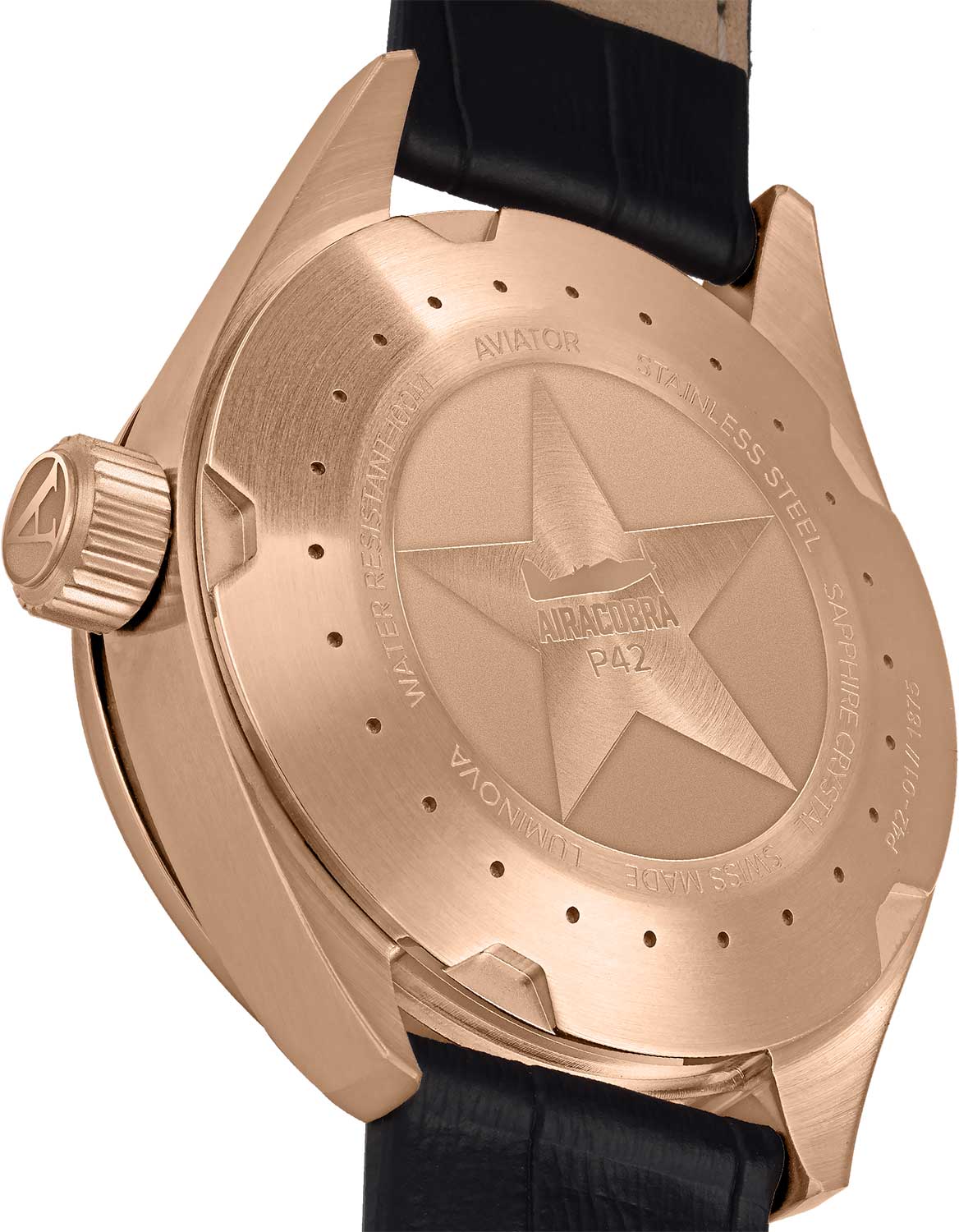 Aviator Airacobra V.1.22.2.152.4 — швейцарские часы в классике авиадизайна, сочетающие безупречную читаемость и высокую надёжность. Корпус диаметром 42 мм выполнен из нержавеющей стали с PVD-покрытиемPVDУльтратонкое покрытие наносится в технике вакуумного напыления, сочетает в себе нитрид титана особой прочности со слоем золота или оксида хрома. Несёт в себе декоративную или защитную функцию. — это придаёт модели благородный и уверенный облик.