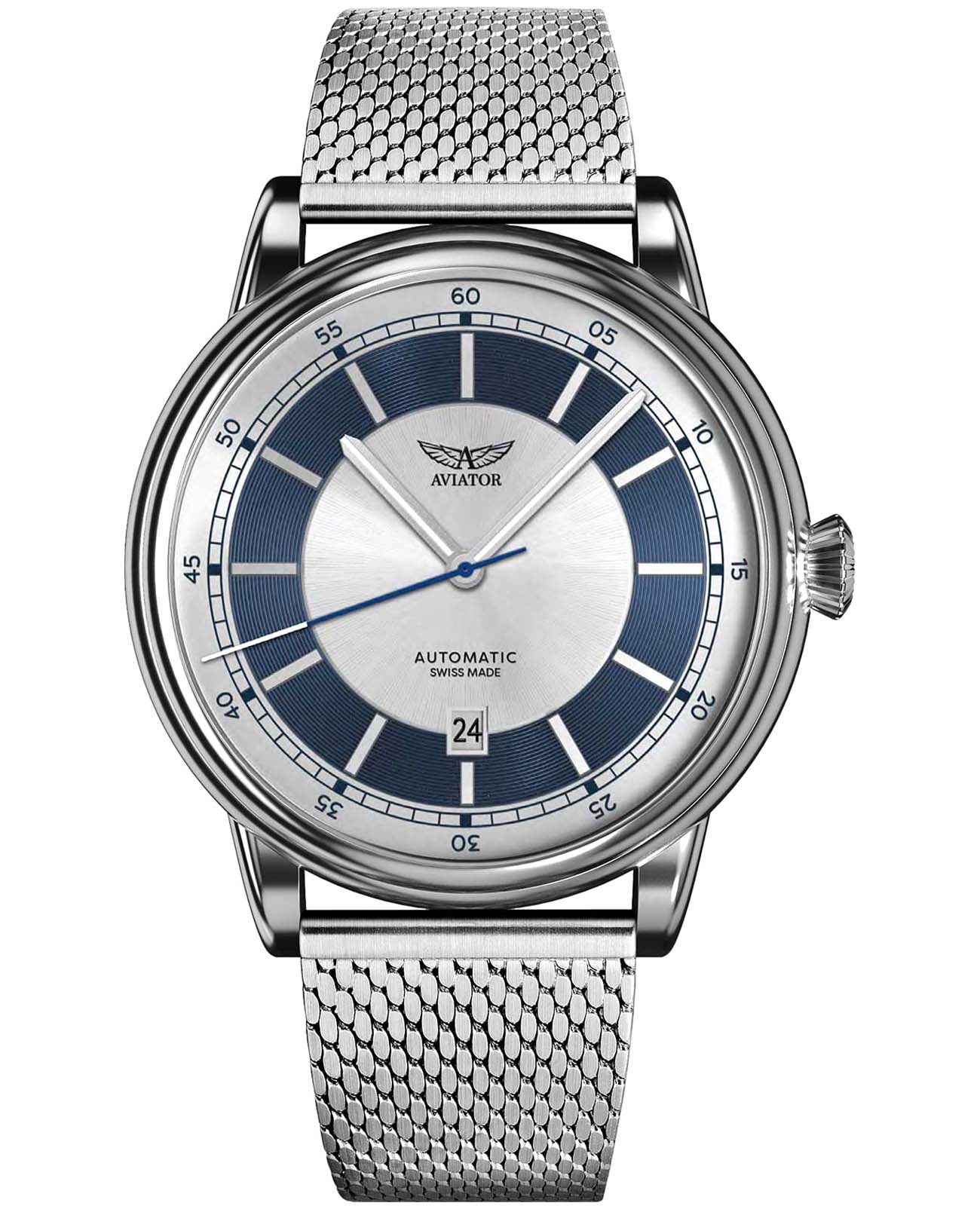 Aviator Douglas DC-3 V.3.32.0.273.5 — швейцарские часы в классике авиадизайна, сочетающие безупречную читаемость и высокую надёжность. Лимитированная серия. Корпус диаметром 45 мм выполнен из нержавеющей стали 316L. Накладные метки выполнены в виде штрихов. Окошко даты находится в положении 6 часов. Часовые метки и стрелки покрыты люминесцентным покрытиемЛюминесцентное покрытиеПозволяет считывать показания времени в темноте. Производители наносят на стрелки, часовые индексы, безель или поверхность циферблата светонакопительный состав, дающий холодное свечение. Superluminova, позволяющим легко определять время даже в тёмное время суток. Поверхность защищена прочным сапфировым стекломСапфировое стеклоПрочный и надёжный материал из кристалла сапфира синтетического происхождения, характеризующийся особой твёрдостью и устойчивостью к царапинам и повреждениям. с антибликовым покрытием, устойчивым к царапинам. Сердце модели — швейцарский механизм Sellita SW 200-1, известный своей точностью и долговечностью. Водозащита 100 метров, позволит плавать, нырять и заниматься другими водными видами спорта. Завинчивающаяся головка и задняя крышка обеспечивают уверенную ударопрочностьУдаропрочный корпусМеханизм заключён в корпус, выполненный из современных материалов, устойчивых к ударам, механическим повреждениям и падению с высоты: инновационный пластик, карбон, нержавеющая сталь, титан. и надёжную защиту от влаги и пыли. В механизме 26 камней, запас хода 38 часов. Модель дополнена стальным браслетом миланского плетения, закреплённым с помощью застёжке-бабочке с кнопкамиЗастёжка "бабочка"Такой вид застёжки дополняется предохранителями, помогающими избежать случайного раскрытия браслета. Обладают изящным исполнением. — для максимального комфорта и лёгкости в повседневном использовании. Циферблат выполнен по технологии sun-ray (солнечные лучи). Коллекция Douglas была разработана в честь известного американского пассажирского самолета Douglas DC-3. Aviator — это образец лётной точности, инженерной чёткости и сдержанной роскоши, идеально подходящий для тех, кто ценит функциональность и уверенность в каждом элементе.