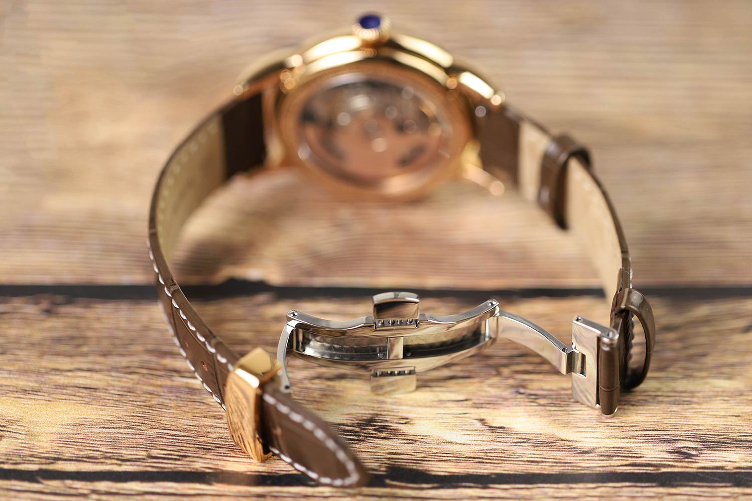 Aviator Douglas Day Date V.3.35.2.280.4 — швейцарские часы в классике авиадизайна, сочетающие безупречную читаемость и высокую надёжность. Лимитированная серия. Корпус диаметром 41,2 мм выполнен из нержавеющей стали 316L с PVD-покрытиемPVDУльтратонкое покрытие наносится в технике вакуумного напыления, сочетает в себе нитрид титана особой прочности со слоем золота или оксида хрома. Несёт в себе декоративную или защитную функцию. цвета розового золота. Накладные метки выполнены в виде римских цифр. Окошко даты находится в положении 6 часов. День недели находится в положении 12 часов. Часовые метки и стрелки покрыты люминесцентным покрытиемЛюминесцентное покрытиеПозволяет считывать показания времени в темноте. Производители наносят на стрелки, часовые индексы, безель или поверхность циферблата светонакопительный состав, дающий холодное свечение. Superluminova, позволяющим легко определять время даже в тёмное время суток. Поверхность защищена прочным сапфировым стекломСапфировое стеклоПрочный и надёжный материал из кристалла сапфира синтетического происхождения, характеризующийся особой твёрдостью и устойчивостью к царапинам и повреждениям. с антибликовым покрытием, устойчивым к царапинам. Сердце модели — швейцарский механизм Sellita SW 240-2, известный своей точностью и долговечностью. Водозащита 100 метров, позволит плавать, нырять и заниматься другими водными видами спорта. Завинчивающаяся головка и задняя крышка обеспечивают уверенную ударопрочностьУдаропрочный корпусМеханизм заключён в корпус, выполненный из современных материалов, устойчивых к ударам, механическим повреждениям и падению с высоты: инновационный пластик, карбон, нержавеющая сталь, титан. и надёжную защиту от влаги и пыли. В механизме 26 камней, запас хода до 41 час. Модель дополнена кожаным ремешком с выразительной текстурой и классическим стилем, закреплённым с помощью застёжке-бабочке с кнопкамиЗастёжка "бабочка"Такой вид застёжки дополняется предохранителями, помогающими избежать случайного раскрытия браслета. Обладают изящным исполнением. — для максимального комфорта и лёгкости в повседневном использовании. Модель вдохновлена американским пассажирским самолетом Douglas DC-3, который является одним из лучших самолетов за всю историю авиации. Aviator — это образец лётной точности, инженерной чёткости и сдержанной роскоши, идеально подходящий для тех, кто ценит функциональность и уверенность в каждом элементе.