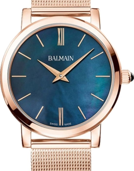 Женские часы Balmain Elegance Chic B7699.33.62 кварцевый механизм с высокой точностью. Сапфировое стеклоСапфировое стеклоПрочный и надёжный материал из кристалла сапфира синтетического происхождения, характеризующийся особой твёрдостью и устойчивостью к царапинам и повреждениям. устойчивое к появлению царапин, обладающее высокой прозрачностью. Корпус изготовлен из нержавеющей стали с PVD-покрытиемPVDУльтратонкое покрытие наносится в технике вакуумного напыления, сочетает в себе нитрид титана особой прочности со слоем золота или оксида хрома. Несёт в себе декоративную или защитную функцию.. Класс водозащиты: 30 метров, позволит защитить корпус от случайных брызг или капель дождя. Стальной браслет миланского плетения с PVD-покрытиемPVDУльтратонкое покрытие наносится в технике вакуумного напыления, сочетает в себе нитрид титана особой прочности со слоем золота или оксида хрома. Несёт в себе декоративную или защитную функцию.. на застёжке «бабочка» с кнопкамиЗастёжка "бабочка"Такой вид застёжки дополняется предохранителями, помогающими избежать случайного раскрытия браслета. Обладают изящным исполнением. . БезельБезельВнешний ободок, закрепляющий стекло. В спортивных часах так называется поворотное кольцо с делениями на циферблате, выполняет роль таймера – замеряет отрезки времени на шкале. Неподвижный безель – элемент декора. Однонаправленно вращающийся безель на дайверских часах позволяет фиксировать моменты погружения и выныривания на поверхность. с PVD-покрытиемPVDУльтратонкое покрытие наносится в технике вакуумного напыления, сочетает в себе нитрид титана особой прочности со слоем золота или оксида хрома. Несёт в себе декоративную или защитную функцию..