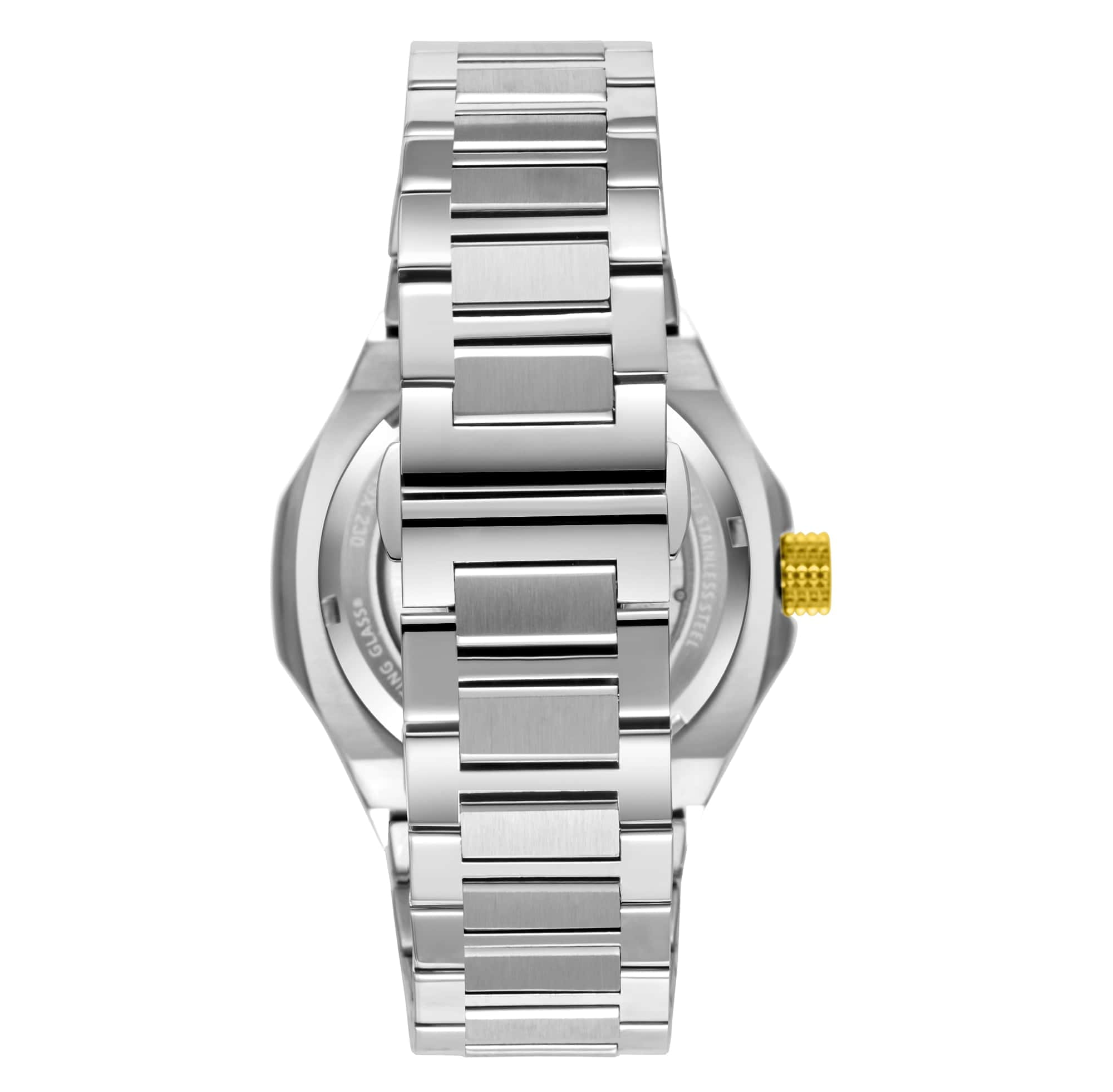 Мужские механические часы Beverly Hills Polo Club Automatic BP3749X.230 — это идеальное сочетание стиля и функциональности. Эти часы из коллекции бренда станут вашим верным спутником в любой ситуации. Точность хода обеспечивается высокоточным автоматическим механизмом, который работает от движения руки. Функция отображения даты и дня недели добавляет удобства в использовании. Стрелки имеют люминесцентное покрытие люминесцентное покрытиеЛюминесцентное покрытиеПозволяет считывать показания времени в темноте. Производители наносят на стрелки, часовые индексы, безель или поверхность циферблата светонакопительный состав, дающий холодное свечение., что позволяет видеть время даже в темноте. Стальной корпус круглой формы диаметром 45.5 мм выполнен из прочной стали, что придает часам долговечность и надежность. Циферблат защищен закаленным минеральным стекломМинеральное стеклоМинеральное стекло представляет собой искусственно выращенный минерал кварца. Такое стекло отличается особой устойчивостью к повреждениям и царапинам. Уступает по некоторым качествам сапфировому стеклу. с сапфировым покрытиемСапфировое стеклоПрочный и надёжный материал из кристалла сапфира синтетического происхождения, характеризующийся особой твёрдостью и устойчивостью к царапинам и повреждениям., что обеспечивает высокую устойчивость к царапинам и повреждениям. БезельБезельВнешний ободок, закрепляющий стекло. В спортивных часах так называется поворотное кольцо с делениями на циферблате, выполняет роль таймера – замеряет отрезки времени на шкале. Неподвижный безель – элемент декора. Однонаправленно вращающийся безель на дайверских часах позволяет фиксировать моменты погружения и выныривания на поверхность. с IP-покрытиемIP-покрытиеМетод ионного напыления. Демонстрирует повышенную устойчивость к истиранию, окислению и химическим веществам. Под воздействием высокого давления и температуры около 1500°C молекулы металла надёжно соединяются с частицами корпуса часов.. Часы обладают водозащитой до 100 м (WR100), что позволит вам плавать и заниматься водными видами спорта, не опасаясь попадания воды в корпус. Стальной браслет изготовлен из высококачественной стали, что обеспечивает комфорт и долговечность. Браслет оборудован раскладной застежкой с фиксатором раскладная застёжкаРаскладная застёжкаТакой тип застёжки используется только на браслетах из металла. Она никогда не раскрывается полностью, происходит разделение на 2 и более частей. Раскладывающая застёжка снизит вероятность потери часов к минимуму., что гарантирует надежную фиксацию на руке.