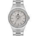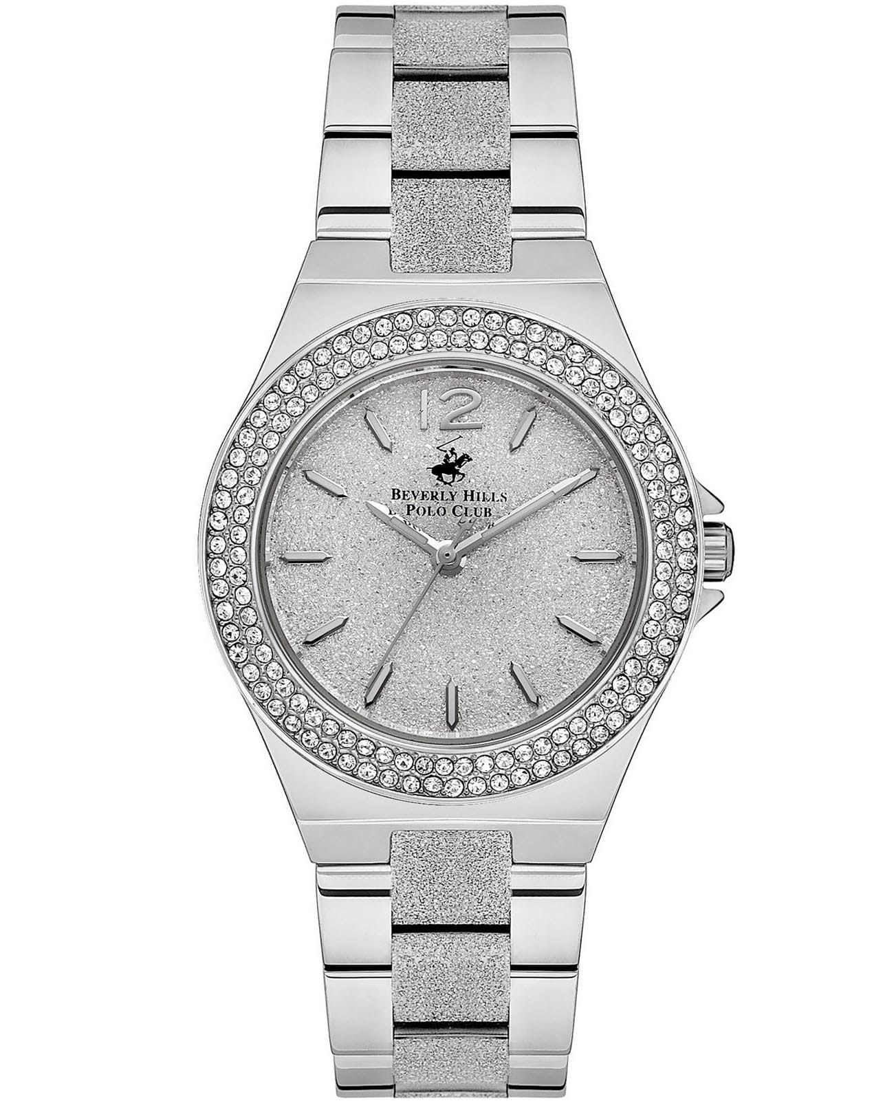 Женские часы Beverly Hills Polo BP3591X.330 с надёжным кварцевым механизмом. Минеральное стеклоМинеральное стеклоМинеральное стекло представляет собой искусственно выращенный минерал кварца. Такое стекло отличается особой устойчивостью к повреждениям и царапинам. Уступает по некоторым качествам сапфировому стеклу. устойчивое к появлению царапин, обладающее высокой прозрачностью. Класс водозащиты: 50 метров, позволит защитить корпус от случайных брызг или капель дождя. Корпус и браслет часов изготовлены из стали. Стальной браслет на раскладной застёжкеРаскладная застёжкаТакой тип застёжки используется только на браслетах из металла. Она никогда не раскрывается полностью, происходит разделение на 2 и более частей. Раскладывающая застёжка снизит вероятность потери часов к минимуму.. БезельБезельВнешний ободок, закрепляющий стекло. В спортивных часах так называется поворотное кольцо с делениями на циферблате, выполняет роль таймера – замеряет отрезки времени на шкале. Неподвижный безель – элемент декора. Однонаправленно вращающийся безель на дайверских часах позволяет фиксировать моменты погружения и выныривания на поверхность. инкрустирован кристаллами. Стрелки и метки с люминесцентным покрытиемЛюминесцентное покрытиеПозволяет считывать показания времени в темноте. Производители наносят на стрелки, часовые индексы, безель или поверхность циферблата светонакопительный состав, дающий холодное свечение..