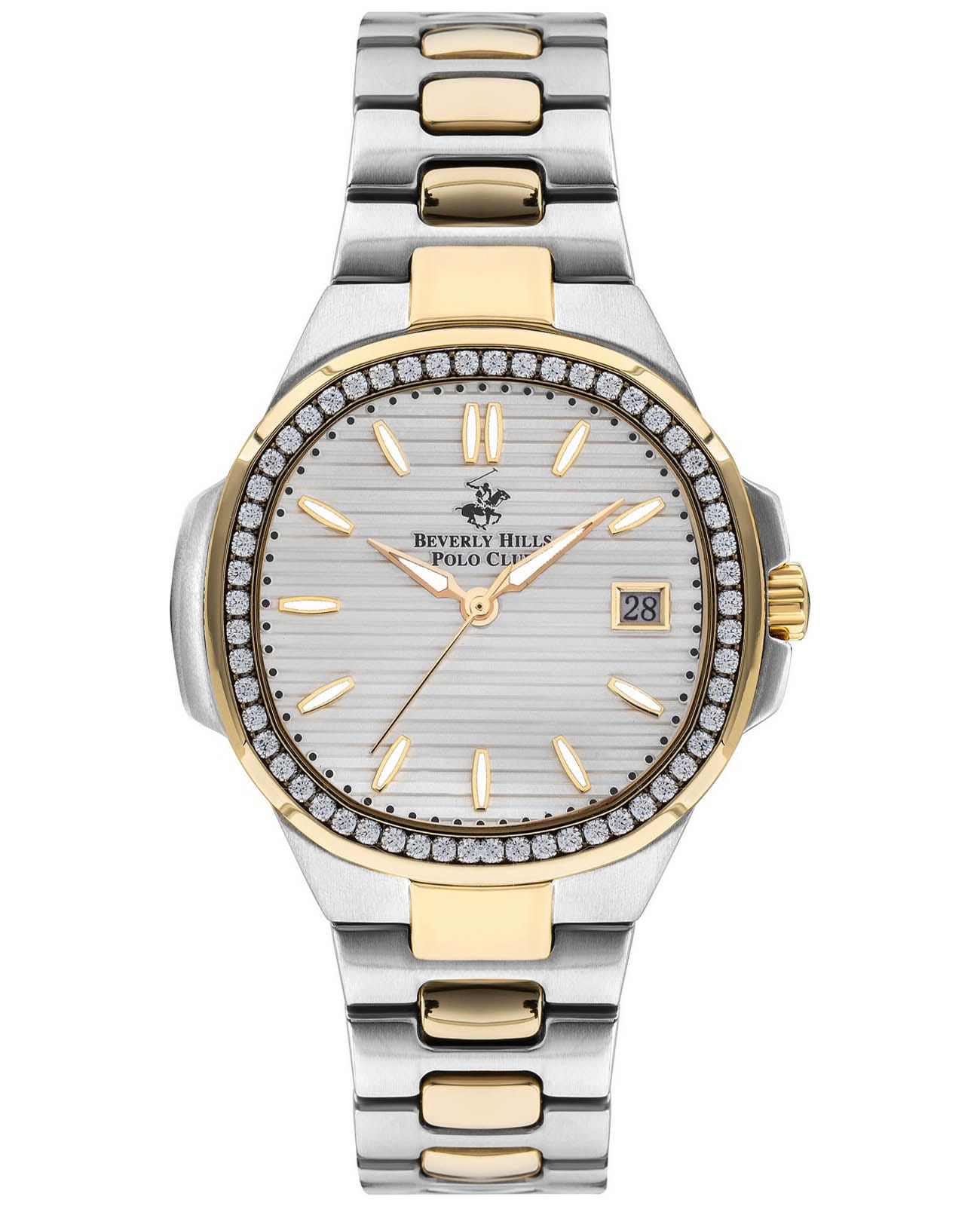 Американские женские часы Beverly Hills Polo Club BP3320X.230 с минеральным стекломМинеральное стеклоМинеральное стекло представляет собой искусственно выращенный минерал кварца. Такое стекло отличается особой устойчивостью к повреждениям и царапинам. Уступает по некоторым качествам сапфировому стеклу. кварцевый механизм с высокой точностью. Безель украшен кристаллами. Класс водозащиты: 30 метров, позволит защитить корпус от случайных брызг или капель дождя. Корпус часов изготовлены из стали с IP-покрытиемIP-покрытиеМетод ионного напыления. Демонстрирует повышенную устойчивость к истиранию, окислению и химическим веществам. Под воздействием высокого давления и температуры около 1500°C молекулы металла надёжно соединяются с частицами корпуса часов.. Стальной браслет на застёжке-бабочке с кнопкамиЗастёжка "бабочка"Такой вид застёжки дополняется предохранителями, помогающими избежать случайного раскрытия браслета. Обладают изящным исполнением. с IP-покрытиемIP-покрытиеМетод ионного напыления. Демонстрирует повышенную устойчивость к истиранию, окислению и химическим веществам. Под воздействием высокого давления и температуры около 1500°C молекулы металла надёжно соединяются с частицами корпуса часов.. БезельБезельВнешний ободок, закрепляющий стекло. В спортивных часах так называется поворотное кольцо с делениями на циферблате, выполняет роль таймера – замеряет отрезки времени на шкале. Неподвижный безель – элемент декора. Однонаправленно вращающийся безель на дайверских часах позволяет фиксировать моменты погружения и выныривания на поверхность. инкрустирован кристаллами. Окошко даты находятся в положении 3 часа. Стрелки и метки с люминесцентным покрытиемЛюминесцентное покрытиеПозволяет считывать показания времени в темноте. Производители наносят на стрелки, часовые индексы, безель или поверхность циферблата светонакопительный состав, дающий холодное свечение..