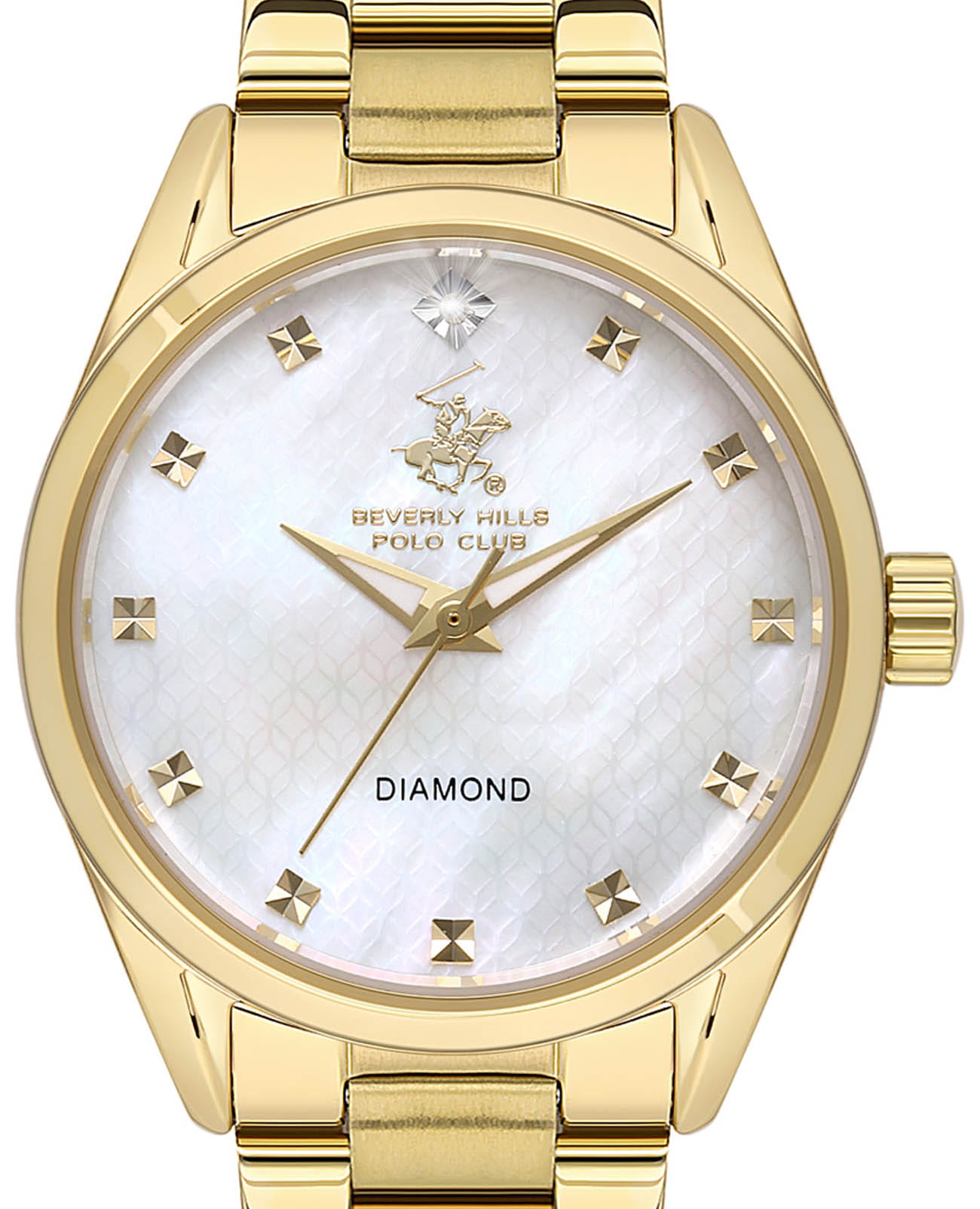 Американские женские часы Beverly Hills Polo Club BP3601C.120 - это стильный женский аксессуар, который сочетает элегантный дизайн и практичность. Корпус выполнен из суперметалла с IP-покрытиемIP-покрытиеМетод ионного напыления. Демонстрирует повышенную устойчивость к истиранию, окислению и химическим веществам. Под воздействием высокого давления и температуры около 1500°C молекулы металла надёжно соединяются с частицами корпуса часов. золотистого цвета, диаметром 32 мм, что обеспечивает долговечность и утончённый внешний вид. Надежное минеральное стеклоМинеральное стеклоМинеральное стекло представляет собой искусственно выращенный минерал кварца. Такое стекло отличается особой устойчивостью к повреждениям и царапинам. Уступает по некоторым качествам сапфировому стеклу. с сапфировым покрытием защищает циферблат от царапин и обеспечивает долговечность. Метки в виде точек, на 12 часов инкрустирован синтетический бриллиант. Модель оснащена кварцевым механизмом, обеспечивающим высокую точность хода. Стрелки с люминесцентным покрытиемЛюминесцентное покрытиеПозволяет считывать показания времени в темноте. Производители наносят на стрелки, часовые индексы, безель или поверхность циферблата светонакопительный состав, дающий холодное свечение.. Стальной браслет на раскладной застёжкеРаскладная застёжкаТакой тип застёжки используется только на браслетах из металла. Она никогда не раскрывается полностью, происходит разделение на 2 и более частей. Раскладывающая застёжка снизит вероятность потери часов к минимуму. обеспечивает комфортное ношение. Водозащита 30 метров позволит защитить корпус от случайных брызг или капель дождя. Эта модель – отличный выбор для тех, кто ищет сочетание стиля, качества и функциональности. Часы станут не только полезным аксессуаром, но и выразительным элементом вашего имиджа.