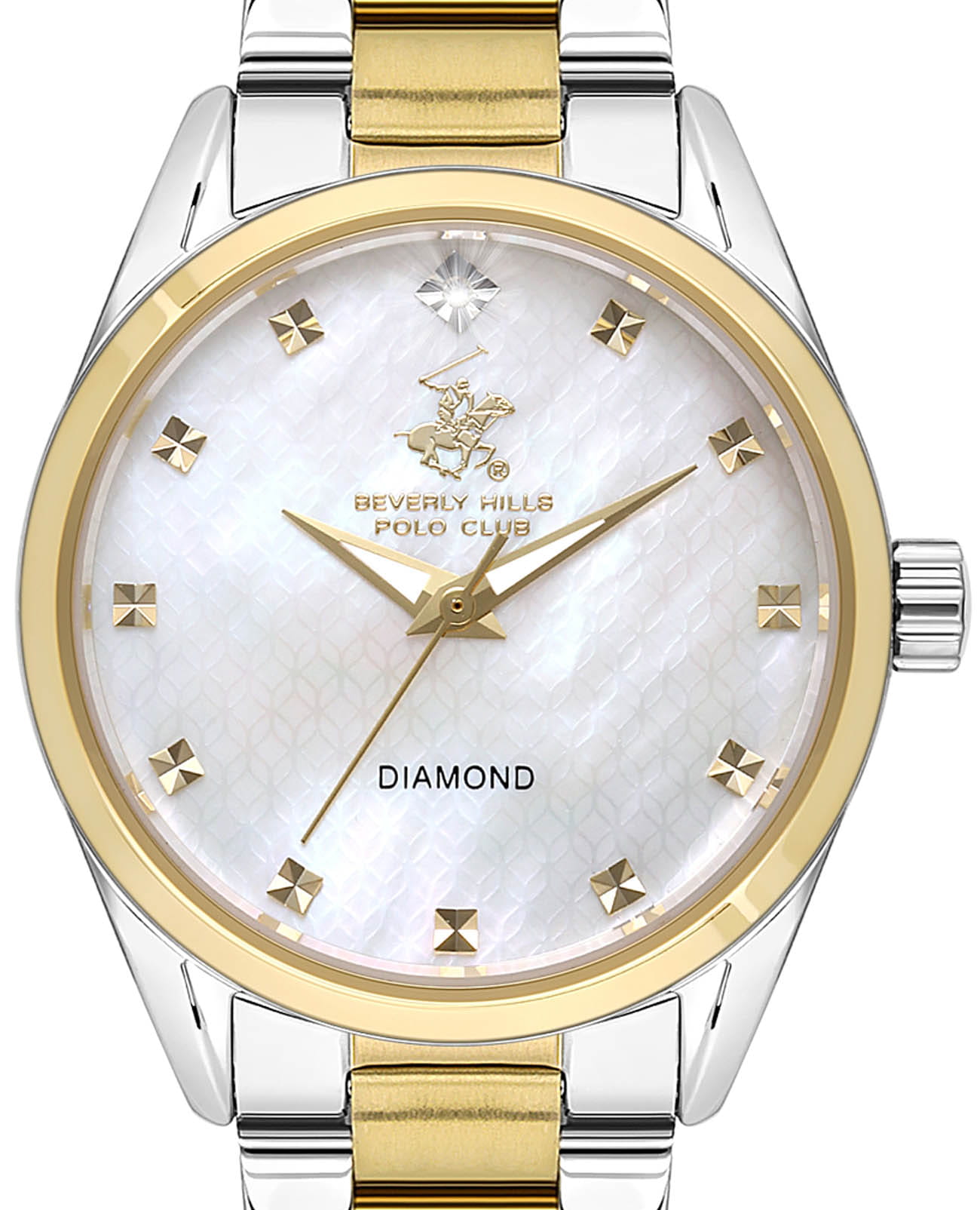 Американские женские часы Beverly Hills Polo Club BP3601C.220 - это стильный женский аксессуар, который сочетает элегантный дизайн и практичность. Корпус выполнен из суперметалла серебристого цвета, диаметром 32 мм, что обеспечивает долговечность и утончённый внешний вид. Надежное минеральное стеклоМинеральное стеклоМинеральное стекло представляет собой искусственно выращенный минерал кварца. Такое стекло отличается особой устойчивостью к повреждениям и царапинам. Уступает по некоторым качествам сапфировому стеклу. с сапфировым покрытием защищает циферблат от царапин и обеспечивает долговечность. Метки в виде точек, на 12 часов инкрустирован синтетический бриллиант. Неподвижный безельБезельВнешний ободок, закрепляющий стекло. В спортивных часах так называется поворотное кольцо с делениями на циферблате, выполняет роль таймера – замеряет отрезки времени на шкале. Неподвижный безель – элемент декора. Однонаправленно вращающийся безель на дайверских часах позволяет фиксировать моменты погружения и выныривания на поверхность. с IP-покрытиемIP-покрытиеМетод ионного напыления. Демонстрирует повышенную устойчивость к истиранию, окислению и химическим веществам. Под воздействием высокого давления и температуры около 1500°C молекулы металла надёжно соединяются с частицами корпуса часов. золотистого цвета. Модель оснащена кварцевым механизмом, обеспечивающим высокую точность хода. Стрелки с люминесцентным покрытиемЛюминесцентное покрытиеПозволяет считывать показания времени в темноте. Производители наносят на стрелки, часовые индексы, безель или поверхность циферблата светонакопительный состав, дающий холодное свечение.. Стальной браслет на раскладной застёжкеРаскладная застёжкаТакой тип застёжки используется только на браслетах из металла. Она никогда не раскрывается полностью, происходит разделение на 2 и более частей. Раскладывающая застёжка снизит вероятность потери часов к минимуму. обеспечивает комфортное ношение. Водозащита 30 метров позволит защитить корпус от случайных брызг или капель дождя. Эта модель – отличный выбор для тех, кто ищет сочетание стиля, качества и функциональности. Часы станут не только полезным аксессуаром, но и выразительным элементом вашего имиджа.