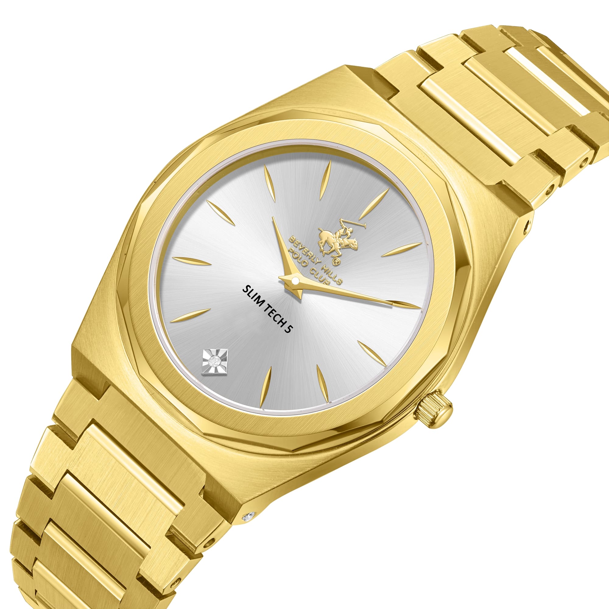 Beverly Hills Polo Club BP3668X.130 – элегантные женские часы, сочетающие стильный дизайн и высокую функциональность. Корпус диаметром 33 мм выполнен из стали с PVD-покрытиемPVDУльтратонкое покрытие наносится в технике вакуумного напыления, сочетает в себе нитрид титана особой прочности со слоем золота или оксида хрома. Несёт в себе декоративную или защитную функцию., обеспечивающего прочность и долговечность. Циферблат украшен синтетическим бриллиантом, придающим модели роскошный вид, и защищён минеральным стекломМинеральное стеклоМинеральное стекло представляет собой искусственно выращенный минерал кварца. Такое стекло отличается особой устойчивостью к повреждениям и царапинам. Уступает по некоторым качествам сапфировому стеклу., устойчивым к царапинам. Часы оснащены точным кварцевым механизмом, гарантирующим надёжное отображение времени. Браслет из нержавеющей стали с PVD-покрытиемPVDУльтратонкое покрытие наносится в технике вакуумного напыления, сочетает в себе нитрид титана особой прочности со слоем золота или оксида хрома. Несёт в себе декоративную или защитную функцию. оснащён раскладной застёжкойРаскладная застёжкаТакой тип застёжки используется только на браслетах из металла. Она никогда не раскрывается полностью, происходит разделение на 2 и более частей. Раскладывающая застёжка снизит вероятность потери часов к минимуму., обеспечивающей комфортное ношение и надёжную фиксацию на запястье. Водозащита до 50 метров (5 ATM) позволяет использовать часы в повседневной жизни, включая кратковременное погружение в воду.