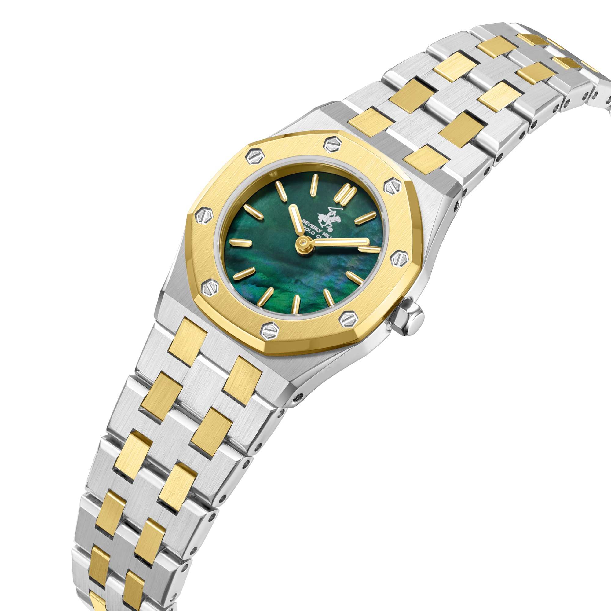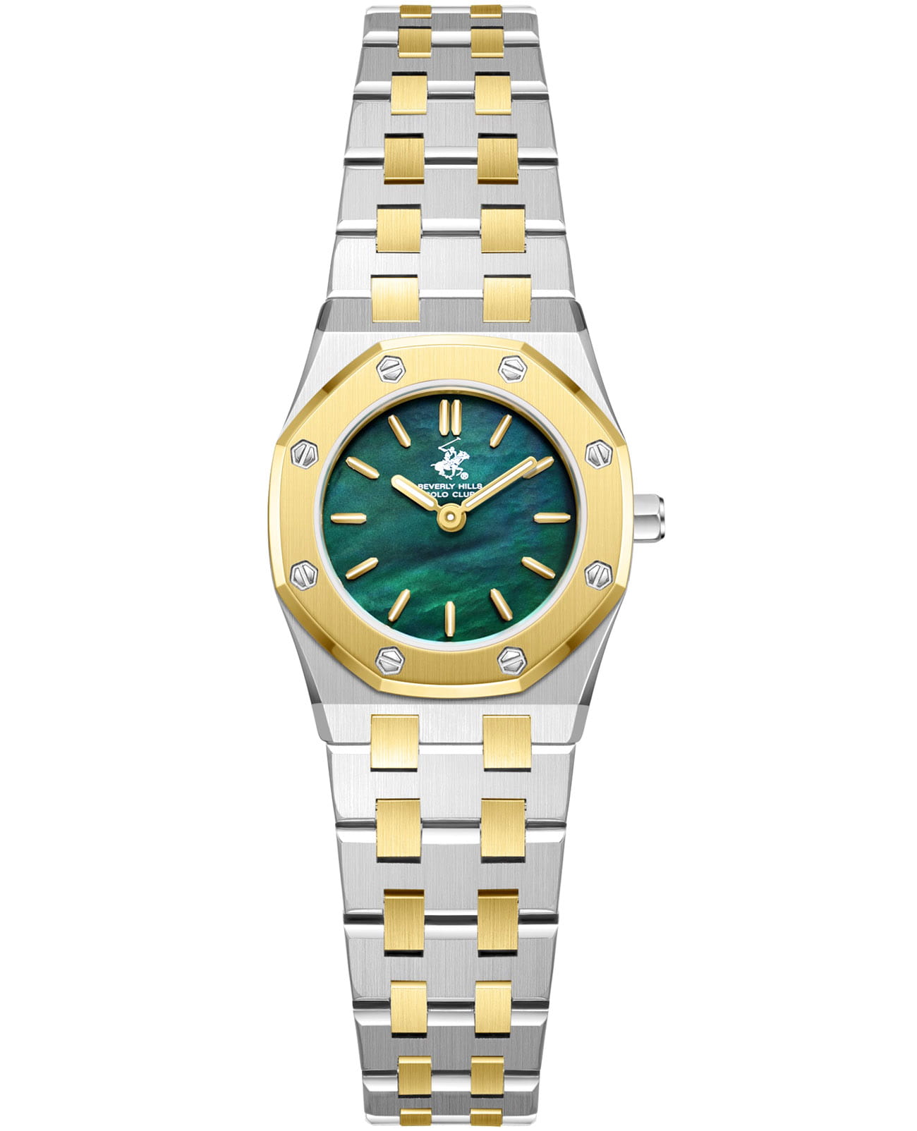 Американские женские часы Beverly Hills Polo Club BP3798X.270 - это стильный женский аксессуар, который сочетает элегантный дизайн и практичность. Корпус выполнен из нержавеющей стали серебристого цвета, диаметром 23 мм, что обеспечивает долговечность и утончённый внешний вид. Надежное минеральное стеклоМинеральное стеклоМинеральное стекло представляет собой искусственно выращенный минерал кварца. Такое стекло отличается особой устойчивостью к повреждениям и царапинам. Уступает по некоторым качествам сапфировому стеклу. с сапфировым покрытием защищает циферблат от царапин и обеспечивает долговечность. Неподвижный безельБезельВнешний ободок, закрепляющий стекло. В спортивных часах так называется поворотное кольцо с делениями на циферблате, выполняет роль таймера – замеряет отрезки времени на шкале. Неподвижный безель – элемент декора. Однонаправленно вращающийся безель на дайверских часах позволяет фиксировать моменты погружения и выныривания на поверхность. с IP-покрытиемIP-покрытиеМетод ионного напыления. Демонстрирует повышенную устойчивость к истиранию, окислению и химическим веществам. Под воздействием высокого давления и температуры около 1500°C молекулы металла надёжно соединяются с частицами корпуса часов. золотого цвета. Метки в виде штрихов. Модель оснащена кварцевым механизмом, обеспечивающим высокую точность хода. Стальной браслет с частичным IP-покрытиемIP-покрытиеМетод ионного напыления. Демонстрирует повышенную устойчивость к истиранию, окислению и химическим веществам. Под воздействием высокого давления и температуры около 1500°C молекулы металла надёжно соединяются с частицами корпуса часов. на застёжке-бабочке с кнопкамиЗастёжка "бабочка"Такой вид застёжки дополняется предохранителями, помогающими избежать случайного раскрытия браслета. Обладают изящным исполнением. обеспечивает комфортное ношение. Стрелки и метки оснащены люминесцентным покрытиемЛюминесцентное покрытиеПозволяет считывать показания времени в темноте. Производители наносят на стрелки, часовые индексы, безель или поверхность циферблата светонакопительный состав, дающий холодное свечение., обеспечивающим отличную видимость даже при слабом освещении. Водозащита 30 метров позволит защитить корпус от случайных брызг или капель дождя. Эта модель – отличный выбор для тех, кто ищет сочетание стиля, качества и функциональности. Часы станут не только полезным аксессуаром, но и выразительным элементом вашего имиджа.