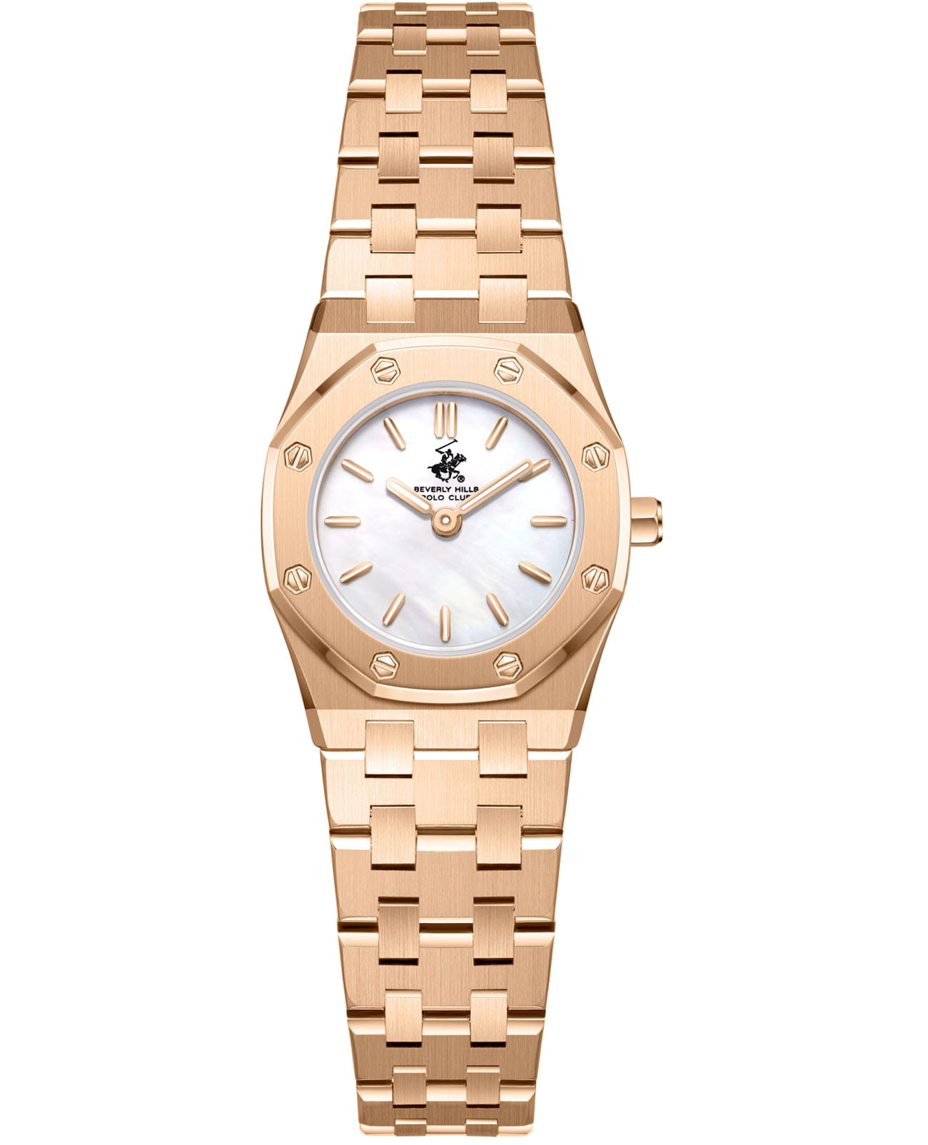 Американские женские часы Beverly Hills Polo Club BP3798X.420 - это стильный женский аксессуар, который сочетает элегантный дизайн и практичность. Корпус выполнен из нержавеющей стали с IP-покрытиемIP-покрытиеМетод ионного напыления. Демонстрирует повышенную устойчивость к истиранию, окислению и химическим веществам. Под воздействием высокого давления и температуры около 1500°C молекулы металла надёжно соединяются с частицами корпуса часов. цвета розового золота, диаметром 23 мм, что обеспечивает долговечность и утончённый внешний вид. Надежное минеральное стеклоМинеральное стеклоМинеральное стекло представляет собой искусственно выращенный минерал кварца. Такое стекло отличается особой устойчивостью к повреждениям и царапинам. Уступает по некоторым качествам сапфировому стеклу. с сапфировым покрытием защищает циферблат от царапин и обеспечивает долговечность. Метки в виде штрихов. Модель оснащена кварцевым механизмом, обеспечивающим высокую точность хода. Стальной браслет на застёжке-бабочке с кнопкамиЗастёжка "бабочка"Такой вид застёжки дополняется предохранителями, помогающими избежать случайного раскрытия браслета. Обладают изящным исполнением. обеспечивает комфортное ношение. Стрелки и метки оснащены люминесцентным покрытиемЛюминесцентное покрытиеПозволяет считывать показания времени в темноте. Производители наносят на стрелки, часовые индексы, безель или поверхность циферблата светонакопительный состав, дающий холодное свечение., обеспечивающим отличную видимость даже при слабом освещении. Водозащита 30 метров позволит защитить корпус от случайных брызг или капель дождя. Эта модель – отличный выбор для тех, кто ищет сочетание стиля, качества и функциональности. Часы станут не только полезным аксессуаром, но и выразительным элементом вашего имиджа.