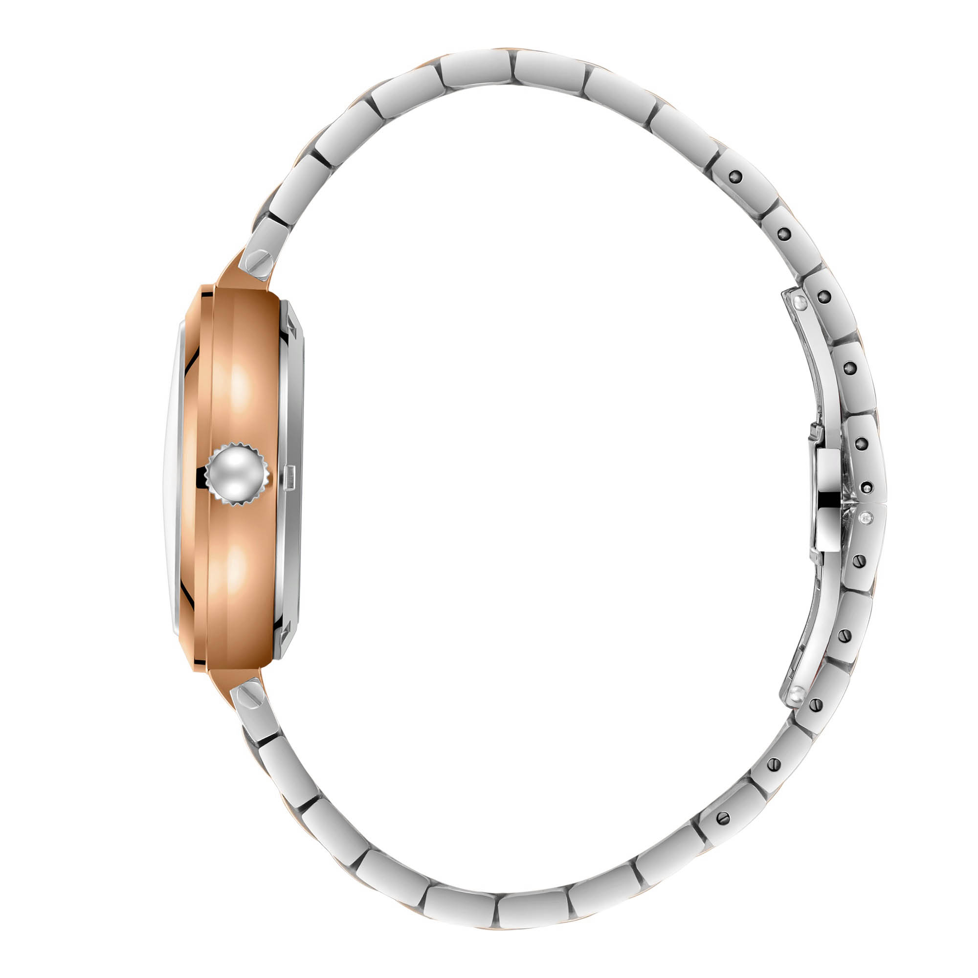 Американские механические часы с автоподзаводом Beverly Hills Polo Club BP3800X.530 - это стильный женский аксессуар, который сочетает элегантный дизайн и практичность. Корпус выполнен из нержавеющей стали с IP-покрытиемIP-покрытиеМетод ионного напыления. Демонстрирует повышенную устойчивость к истиранию, окислению и химическим веществам. Под воздействием высокого давления и температуры около 1500°C молекулы металла надёжно соединяются с частицами корпуса часов. цвета розового золота, диаметром 35 мм, что обеспечивает долговечность и утончённый внешний вид. Надежное минеральное стеклоМинеральное стеклоМинеральное стекло представляет собой искусственно выращенный минерал кварца. Такое стекло отличается особой устойчивостью к повреждениям и царапинам. Уступает по некоторым качествам сапфировому стеклу. с сапфировым покрытием защищает циферблат от царапин и обеспечивает долговечность. Метки в виде точек инкрустированы цирконами. Стальной браслет с частичным IP-покрытиемIP-покрытиеМетод ионного напыления. Демонстрирует повышенную устойчивость к истиранию, окислению и химическим веществам. Под воздействием высокого давления и температуры около 1500°C молекулы металла надёжно соединяются с частицами корпуса часов. на застёжке-бабочке с кнопкамиЗастёжка "бабочка"Такой вид застёжки дополняется предохранителями, помогающими избежать случайного раскрытия браслета. Обладают изящным исполнением. обеспечивает комфортное ношение. Стрелки оснащены люминесцентным покрытиемЛюминесцентное покрытиеПозволяет считывать показания времени в темноте. Производители наносят на стрелки, часовые индексы, безель или поверхность циферблата светонакопительный состав, дающий холодное свечение., обеспечивающим отличную видимость даже при слабом освещении. Водозащита 30 метров позволит защитить корпус от случайных брызг или капель дождя. Эта модель – отличный выбор для тех, кто ищет сочетание стиля, качества и функциональности. Часы станут не только полезным аксессуаром, но и выразительным элементом вашего имиджа.