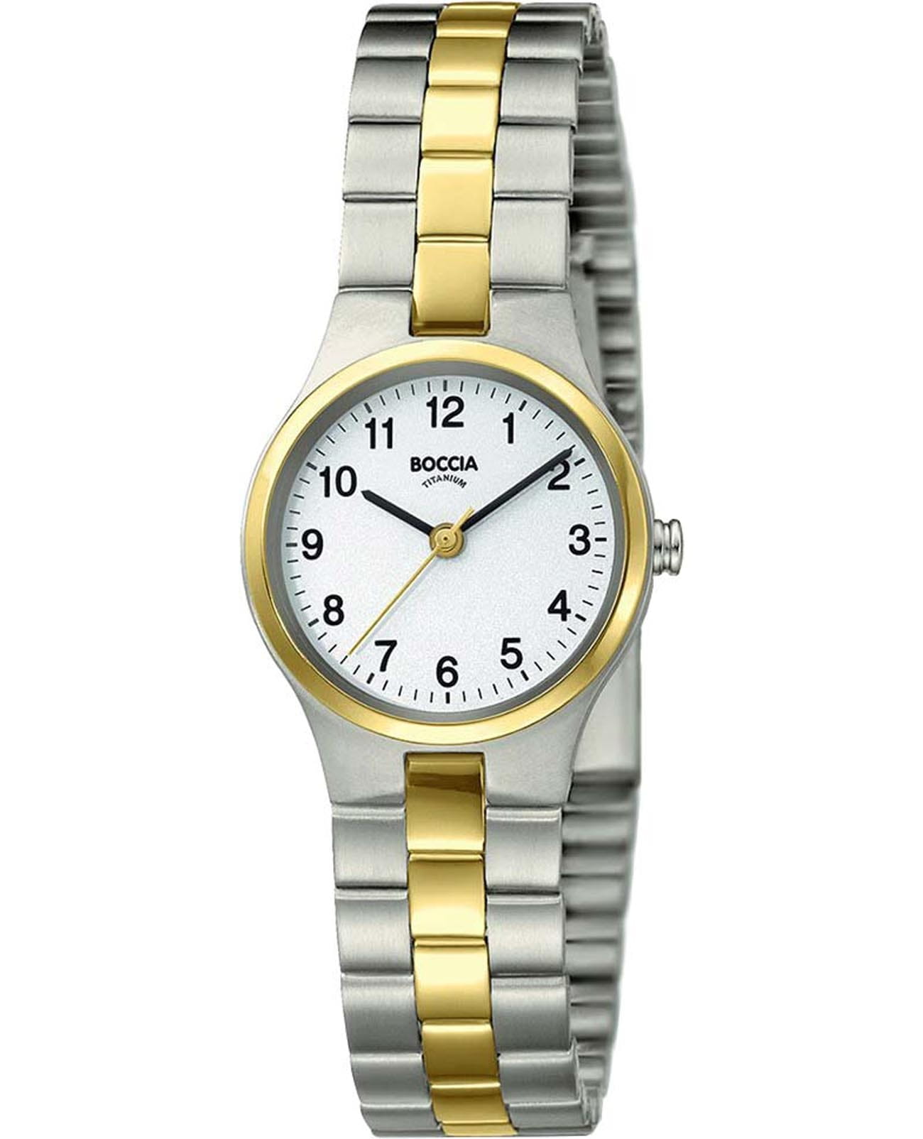 Женские наручные часы Boccia Titanium 3082-05 с надёжным кварцевым механизмом. Корпус часов изготовлен из титана. Титановый браслет с частичным PVD-покрытиемPVDУльтратонкое покрытие наносится в технике вакуумного напыления, сочетает в себе нитрид титана особой прочности со слоем золота или оксида хрома. Несёт в себе декоративную или защитную функцию. на раскладной застёжкеРаскладная застёжкаТакой тип застёжки используется только на браслетах из металла. Она никогда не раскрывается полностью, происходит разделение на 2 и более частей. Раскладывающая застёжка снизит вероятность потери часов к минимуму.. Минеральное стеклоМинеральное стеклоМинеральное стекло представляет собой искусственно выращенный минерал кварца. Такое стекло отличается особой устойчивостью к повреждениям и царапинам. Уступает по некоторым качествам сапфировому стеклу. устойчивое к мелким механическим повреждениям. Класс водозащиты: 50 метров, позволит защитить корпус от случайных брызг или капель дождя.