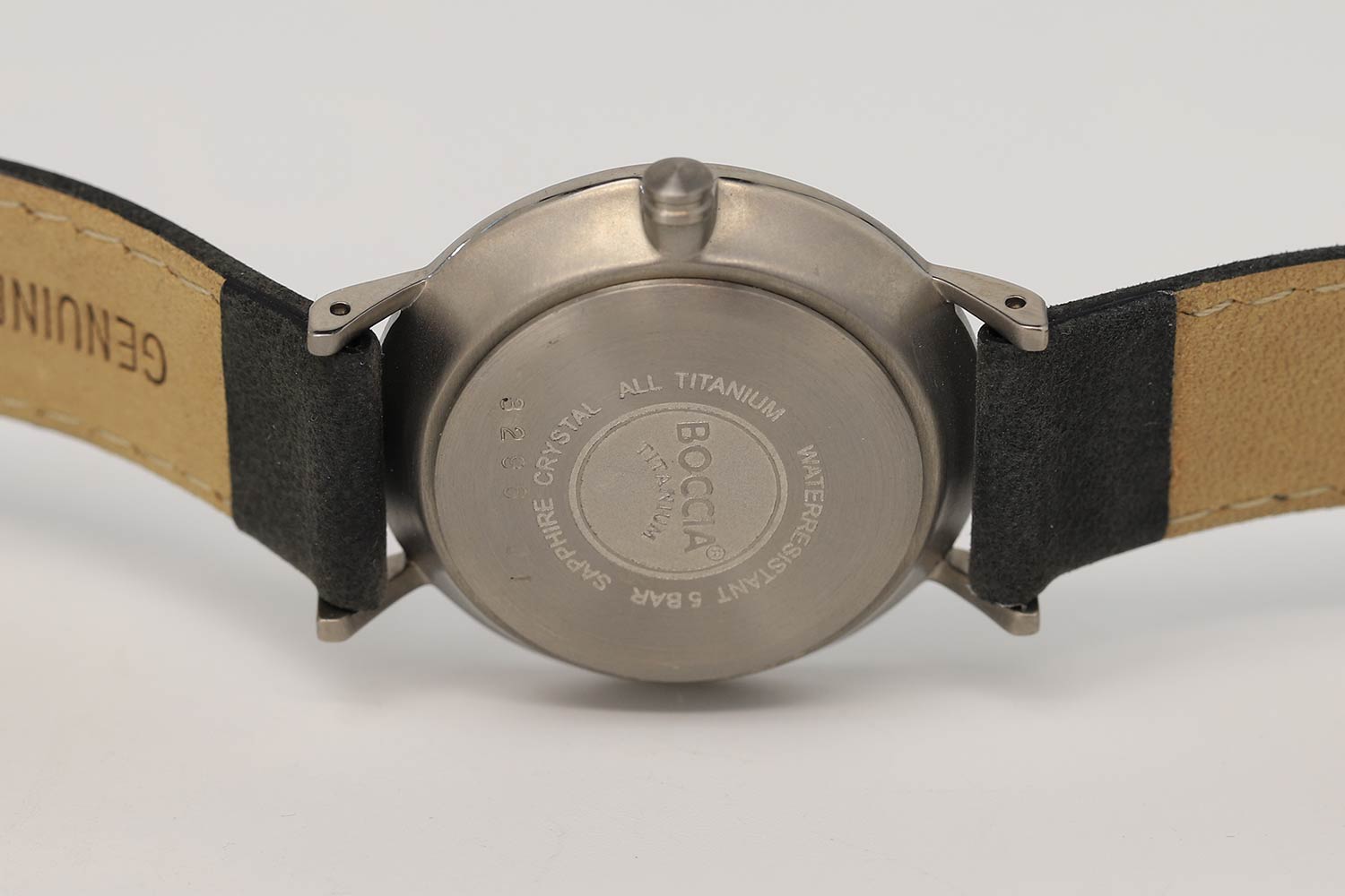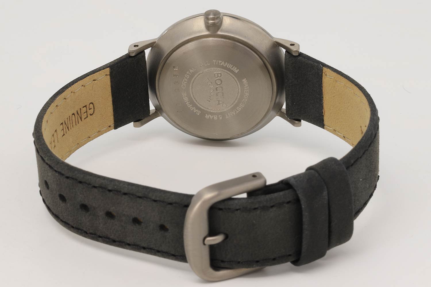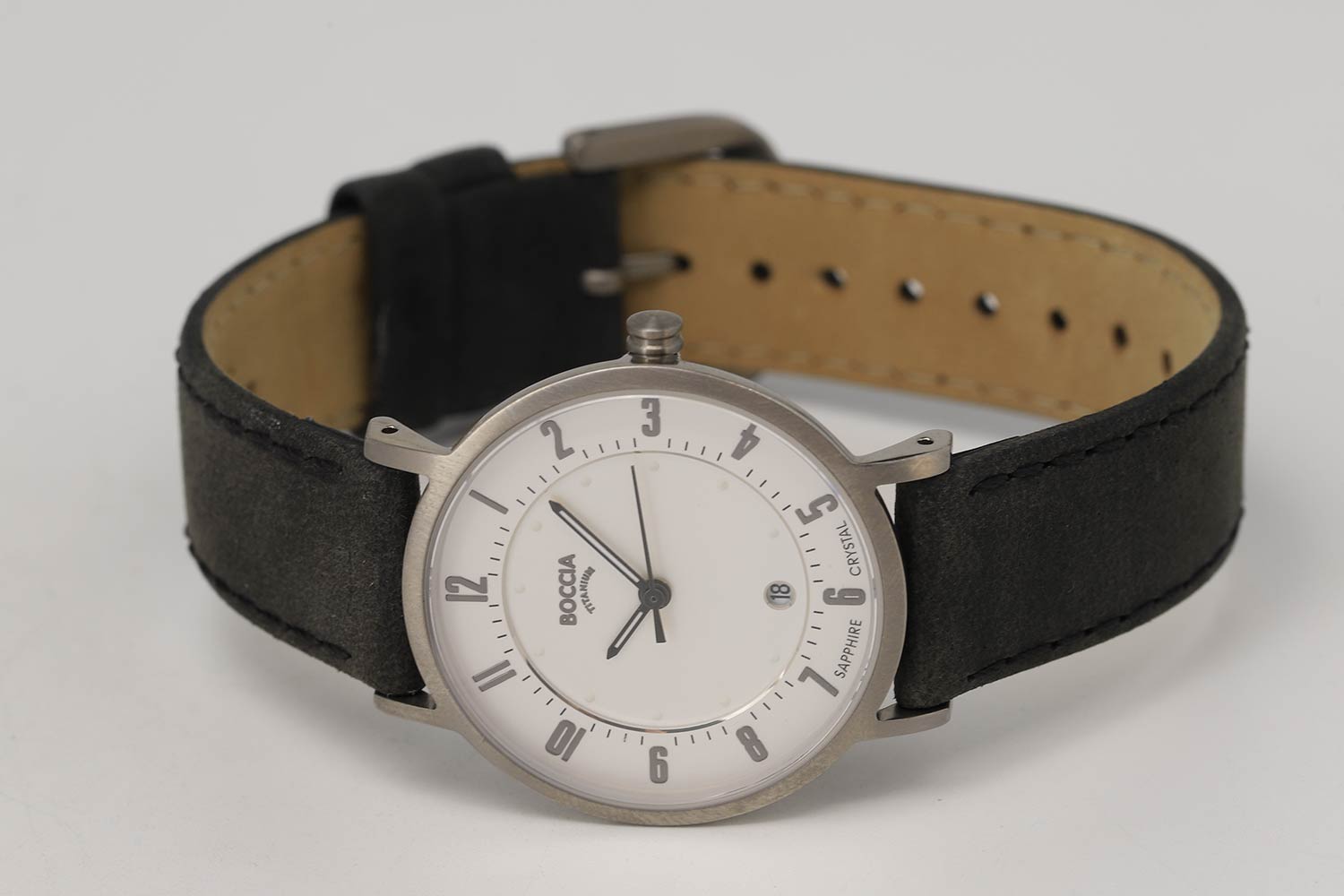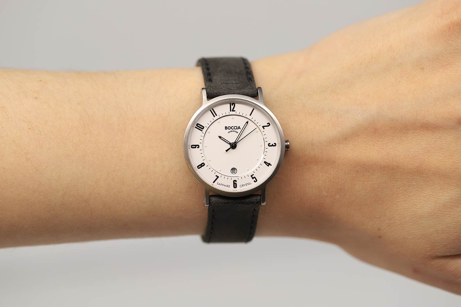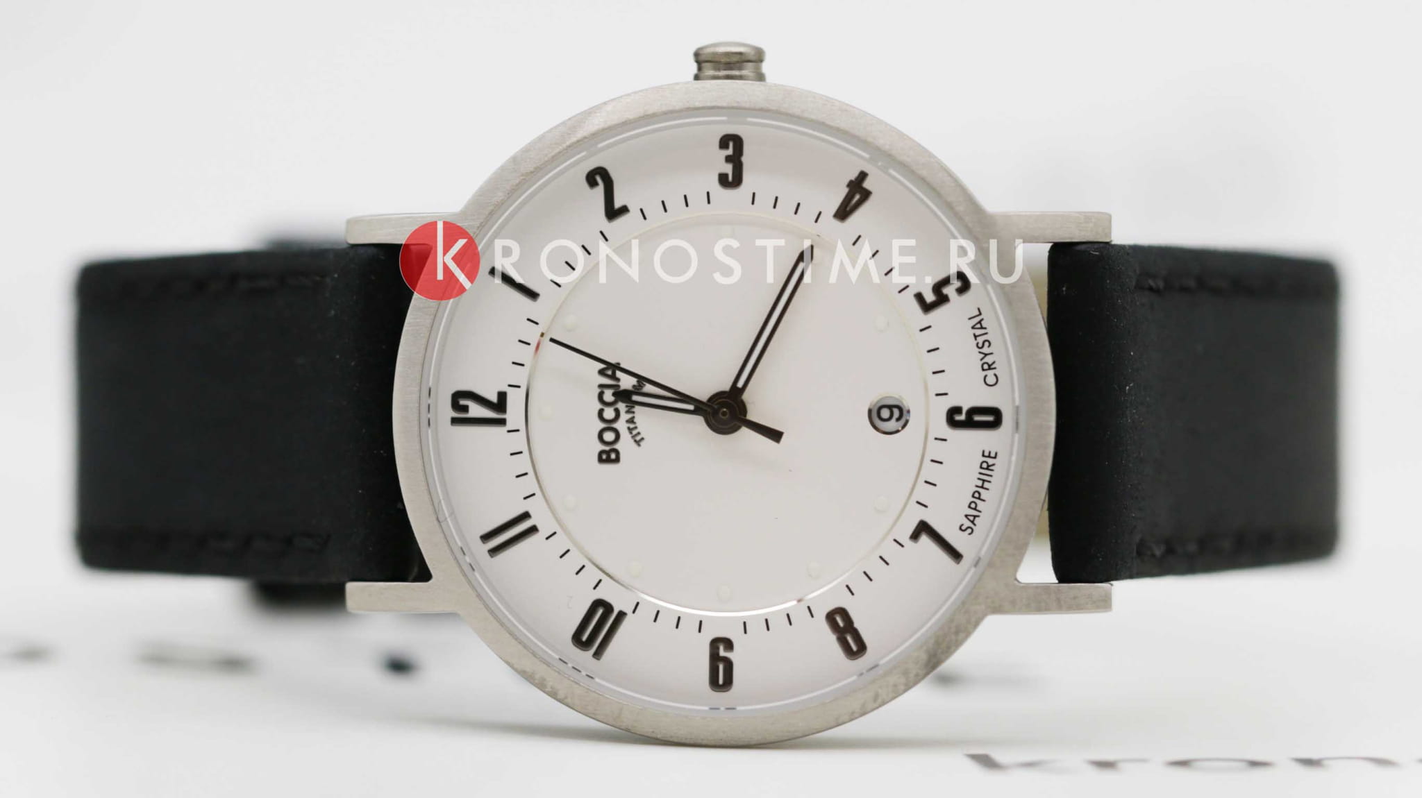 Женские наручные часы Boccia Titanium 3296-01 с надёжным кварцевым механизмом. Сапфировое стеклоСапфировое стеклоПрочный и надёжный материал из кристалла сапфира синтетического происхождения, характеризующийся особой твёрдостью и устойчивостью к царапинам и повреждениям. устойчивое к мелким механическим повреждениям. Корпус часов изготовлен из титана. Кожаный ремешок на стандартной застёжке. Класс водозащиты: 50 метров, позволит защитить корпус от случайных брызг или капель дождя. Окошко даты находится в положении 6 часов. Стрелки с люминесцентным покрытиемЛюминесцентное покрытиеПозволяет считывать показания времени в темноте. Производители наносят на стрелки, часовые индексы, безель или поверхность циферблата светонакопительный состав, дающий холодное свечение..
