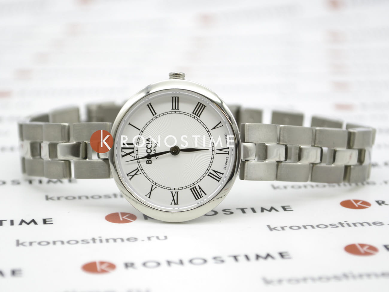 Женские немецкие титановые часы Boccia Titanium 3346-01, кварцевый механизм с высокой точностью. Минеральное стеклоМинеральное стеклоМинеральное стекло представляет собой искусственно выращенный минерал кварца. Такое стекло отличается особой устойчивостью к повреждениям и царапинам. Уступает по некоторым качествам сапфировому стеклу. устойчивое к появлению царапин, обладающее высокой прозрачностью. Корпус изготовлен из титана. Метки в виде римских цифр. Класс водозащиты: 50 метров, позволит защитить корпус от случайных брызг или капель дождя. Стальной браслет на раскладной застёжкеРаскладная застёжкаТакой тип застёжки используется только на браслетах из металла. Она никогда не раскрывается полностью, происходит разделение на 2 и более частей. Раскладывающая застёжка снизит вероятность потери часов к минимуму..