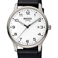 Мужские наручные часы Boccia Titanium 3620-07 с надёжным кварцевым механизмом. Корпус часов изготовлен из титана. Минеральное стеклоМинеральное стеклоМинеральное стекло представляет собой искусственно выращенный минерал кварца. Такое стекло отличается особой устойчивостью к повреждениям и царапинам. Уступает по некоторым качествам сапфировому стеклу. устойчивое к мелким механическим повреждениям. Класс водозащиты: 50 метров, позволит защитить корпус от случайных брызг или капель дождя. Кожаный ремешок на стандартной застёжке. Окошко даты находится в положении 3 часа. Стрелки с люминесцентным покрытиемЛюминесцентное покрытиеПозволяет считывать показания времени в темноте. Производители наносят на стрелки, часовые индексы, безель или поверхность циферблата светонакопительный состав, дающий холодное свечение..