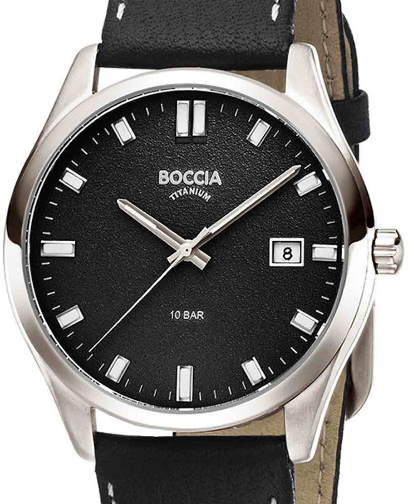 Часы Boccia 3669-02 представляют собой идеальное сочетание стиля и функциональности для современного мужчины. Оснащенные надежным кварцевым механизмом Miyota GR12, они обеспечивают высокую точность хода. На черном циферблате с метками времени расположены центральные часовая, минутная и секундная стрелки, а также апертура даты в положении 3 часов, что делает использование этих часов еще более удобным. Корпус часов имеет круглый дизайн и выполнен из суперлегкого титана, что обеспечивает комфорт и легкость при ношении. Диаметр корпуса составляет 39 мм, что делает часы универсальными и подходящими для любого запястья. Стрелки часов покрыты люминесцентным покрытиемЛюминесцентное покрытиеПозволяет считывать показания времени в темноте. Производители наносят на стрелки, часовые индексы, безель или поверхность циферблата светонакопительный состав, дающий холодное свечение., которое мягко светится в темноте, освещая путь даже в самых загадочных сумерках. Черный кожаный ремешок с классической застежкой добавляет элегантности и обеспечивает надежную фиксацию на руке. Часы защищены прочным минеральным стекломМинеральное стеклоМинеральное стекло представляет собой искусственно выращенный минерал кварца. Такое стекло отличается особой устойчивостью к повреждениям и царапинам. Уступает по некоторым качествам сапфировому стеклу., устойчивым к мелким механическим повреждениям, что сохраняет их безупречный вид при повседневном использовании. Водостойкость модели составляет WR 100, что позволяет использовать их при плавании без погружения, не беспокоясь о сохранности механизма.