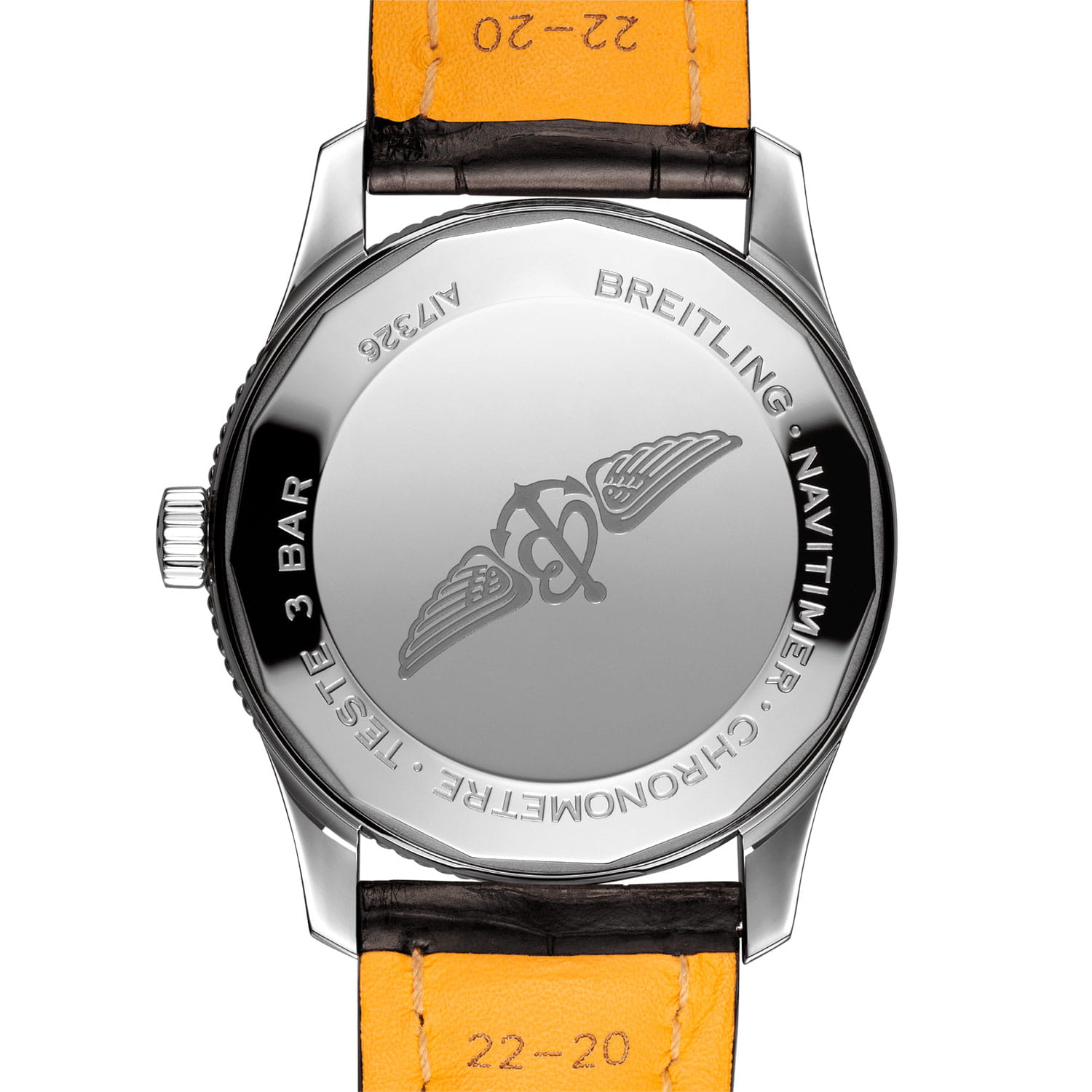 Мужские швейцарские часы-хронометр Breitling Navitimer Automatic 41 A17326241B1P1, механический механизм (автоматический калибр) с высокой точностью. Сапфировое стеклоСапфировое стеклоПрочный и надёжный материал из кристалла сапфира синтетического происхождения, характеризующийся особой твёрдостью и устойчивостью к царапинам и повреждениям. устойчивое к появлению царапин, обладающее высокой прозрачностью. Класс водозащиты: 30 метров, позволит защитить корпус от случайных брызг или капель дождя. Корпус часов изготовлен из стали. Вращающийся стальной двунаправленный безельБезельВнешний ободок, закрепляющий стекло. В спортивных часах так называется поворотное кольцо с делениями на циферблате, выполняет роль таймера – замеряет отрезки времени на шкале. Неподвижный безель – элемент декора. Однонаправленно вращающийся безель на дайверских часах позволяет фиксировать моменты погружения и выныривания на поверхность.. Стрелки и метки с люминесцентным покрытиемЛюминесцентное покрытиеПозволяет считывать показания времени в темноте. Производители наносят на стрелки, часовые индексы, безель или поверхность циферблата светонакопительный состав, дающий холодное свечение.. Кожаный ремешок из кожи аллигатора на стандартной застёжке. Окошко даты находится в положении 6 часов. Сертификат COSCСертификат COSCОфициальный сертификат, подтверждающий то, что часы ходят с особо высокой точностью. Для получения документа часы подвергаются тестовым испытаниям, разработанным швейцарским институтом тестирования хронометров COSC. Допустимая норма для механических часов -4/+6 секунд в день, для кварцевых моделей +/- 0,07 секунд в день..