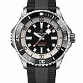 Мужские водонепроницаемые швейцарские часы Breitling Superocean Automatic 46 A17378211B1S1, механический механизм (автоматический калибр) с высокой точностью. Сапфировое стеклоСапфировое стеклоПрочный и надёжный материал из кристалла сапфира синтетического происхождения, характеризующийся особой твёрдостью и устойчивостью к царапинам и повреждениям. устойчивое к появлению царапин, обладающее высокой прозрачностью. Класс водозащиты: 300 метров, позволит плавать, нырять и заниматься другими водными видами спорта. Корпус часов изготовлен из стали. Силиконовый ремешок с раскладной застёжкойРаскладная застёжкаТакой тип застёжки используется только на браслетах из металла. Она никогда не раскрывается полностью, происходит разделение на 2 и более частей. Раскладывающая застёжка снизит вероятность потери часов к минимуму.. Стрелки и метки с люминесцентным покрытиемЛюминесцентное покрытиеПозволяет считывать показания времени в темноте. Производители наносят на стрелки, часовые индексы, безель или поверхность циферблата светонакопительный состав, дающий холодное свечение.. Широкие стрелки и индексы с люминесцентным покрытиемЛюминесцентное покрытиеПозволяет считывать показания времени в темноте. Производители наносят на стрелки, часовые индексы, безель или поверхность циферблата светонакопительный состав, дающий холодное свечение. обеспечивают легкую читаемость под водой. Вращающийся стальной безельБезельВнешний ободок, закрепляющий стекло. В спортивных часах так называется поворотное кольцо с делениями на циферблате, выполняет роль таймера – замеряет отрезки времени на шкале. Неподвижный безель – элемент декора. Однонаправленно вращающийся безель на дайверских часах позволяет фиксировать моменты погружения и выныривания на поверхность. с люминесцентным покрытиемЛюминесцентное покрытиеПозволяет считывать показания времени в темноте. Производители наносят на стрелки, часовые индексы, безель или поверхность циферблата светонакопительный состав, дающий холодное свечение. Superluminova из нержавеющей стали и керамики, защищенный от царапин, никогда не изнашивается и не выцветает.