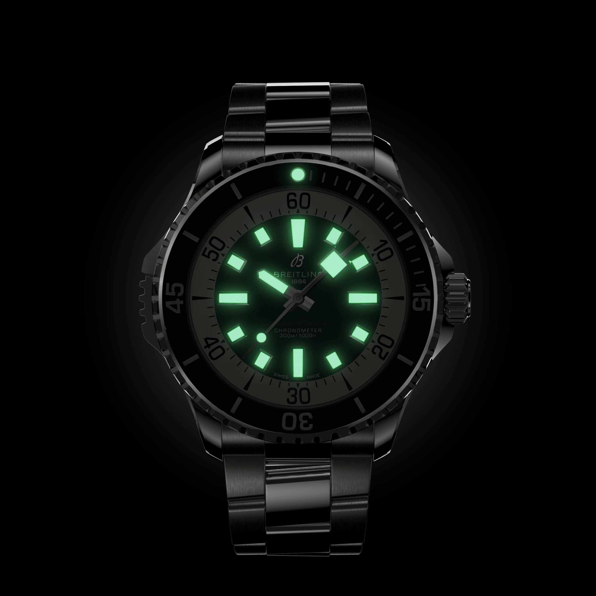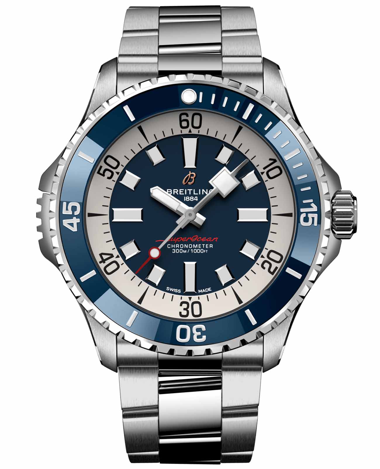 Мужские водонепроницаемые швейцарские часы Breitling Superocean Automatic 46 A17378E71C1A1, механический механизм (автоматический калибр) с высокой точностью. Сапфировое стеклоСапфировое стеклоПрочный и надёжный материал из кристалла сапфира синтетического происхождения, характеризующийся особой твёрдостью и устойчивостью к царапинам и повреждениям. устойчивое к появлению царапин, обладающее высокой прозрачностью. Класс водозащиты: 300 метров, позволит плавать, нырять и заниматься другими водными видами спорта. Корпус часов изготовлен из стали. Стальной браслет с раскладной застёжкойРаскладная застёжкаТакой тип застёжки используется только на браслетах из металла. Она никогда не раскрывается полностью, происходит разделение на 2 и более частей. Раскладывающая застёжка снизит вероятность потери часов к минимуму.. Стрелки и метки с люминесцентным покрытиемЛюминесцентное покрытиеПозволяет считывать показания времени в темноте. Производители наносят на стрелки, часовые индексы, безель или поверхность циферблата светонакопительный состав, дающий холодное свечение.. Широкие стрелки и индексы с люминесцентным покрытиемЛюминесцентное покрытиеПозволяет считывать показания времени в темноте. Производители наносят на стрелки, часовые индексы, безель или поверхность циферблата светонакопительный состав, дающий холодное свечение. обеспечивают легкую читаемость под водой. Вращающийся стальной безельБезельВнешний ободок, закрепляющий стекло. В спортивных часах так называется поворотное кольцо с делениями на циферблате, выполняет роль таймера – замеряет отрезки времени на шкале. Неподвижный безель – элемент декора. Однонаправленно вращающийся безель на дайверских часах позволяет фиксировать моменты погружения и выныривания на поверхность. с люминесцентным покрытиемЛюминесцентное покрытиеПозволяет считывать показания времени в темноте. Производители наносят на стрелки, часовые индексы, безель или поверхность циферблата светонакопительный состав, дающий холодное свечение. Superluminova из нержавеющей стали и керамики, защищенный от царапин, никогда не изнашивается и не выцветает.