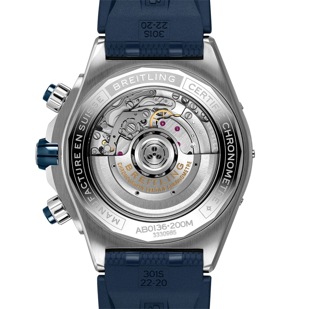 Мануфактурный механизм Breitling 01, сертифицированный Швейцарским институтом официального тестирования хронометров (COSC). Сапфировое, антибликовое стекло с двух сторон.