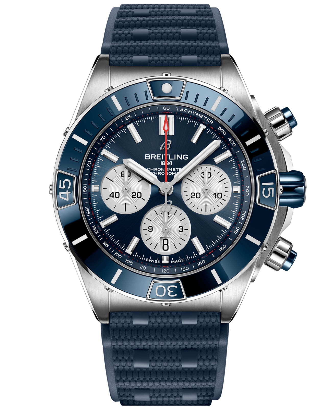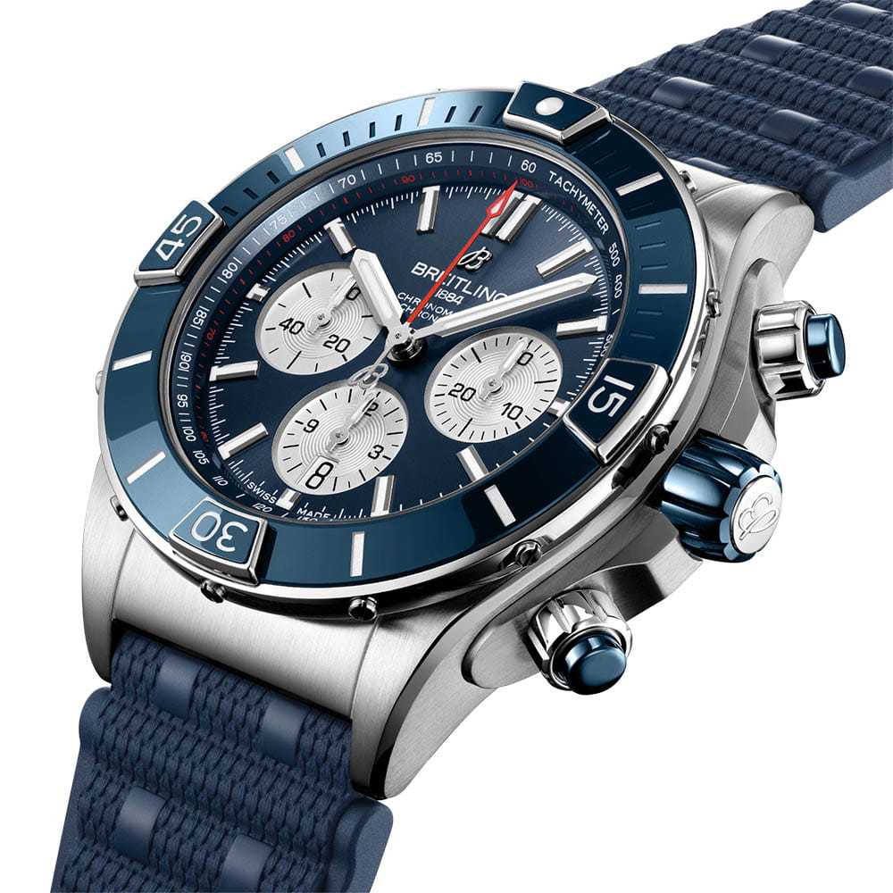 «Реактивные» часы Breitling на все случаи жизни. Часы Super Chronomat созданы по мотивам оригинальной модели Chronomat 80-х годов, которая была разработана компанией Breitling для асов пилотажной эскадрильи. Обладающие наиболее смелым дизайном из всех моделей коллекции Chronomat, часы Super Chronomat отличаются кармической инкрустацией на безеле, кнопках хронографа и заводной головке. Кроме того, их дополняет каучуковый ремешок в стиле Rouleaux. Эти универсальные спортивные часы подчеркнут ваш безупречный вкус.