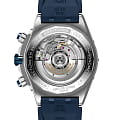 Корпус часов изготовлен из нержавеющей стали. Синий каучуковый ремешок со складной клипсой. Прозрачная задняя крышка корпуса из сапфирового стекла. Класс водозащиты: 200 метров.