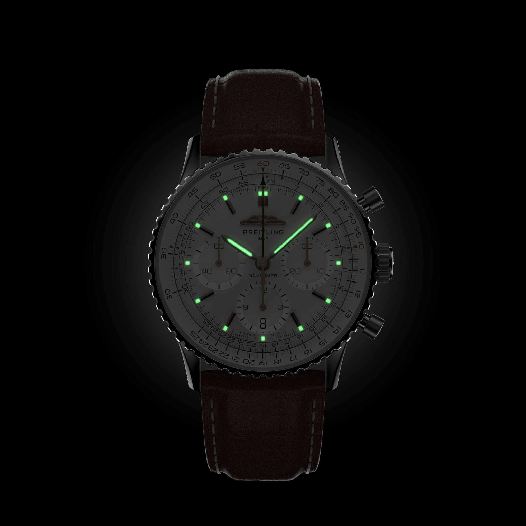 Мужские швейцарские часы-хронографХронографФункция позволяет измерять отрезки времени с особой точностью: часы, минуты, секунды. Верным признаком хронографа является наличие на циферблате 3 дополнительных окошек-счётчиков. с секундомеромСекундомерСекундоме́р — прибор, способный измерять интервалы времени с точностью до долей секунды. Breitling Navitimer B01 Chronograph 41 AB0139211G1P1, механический механизм (автоматический калибр) с высокой точностью. С момента своего дебюта 70 лет назад icon от Breitling претерпел множество модификаций, но этот новый Navitimer отражает его самые классические функции, дополняя их современными усовершенствованиями. Сплющенная логарифмическая линейка и выпуклый кристалл создают иллюзию более изящного профиля. Сапфировое стеклоСапфировое стеклоПрочный и надёжный материал из кристалла сапфира синтетического происхождения, характеризующийся особой твёрдостью и устойчивостью к царапинам и повреждениям. устойчивое к появлению царапин, обладающее высокой прозрачностью. Класс водозащиты: 30 метров, позволит защитить корпус от случайных брызг или капель дождя. Корпус часов изготовлен из стали. Чередующиеся полированные и матовые металлические элементы создают блестящую, но в то же время сдержанную отделку. Кожаный ремешок с раскладной застёжкойРаскладная застёжкаТакой тип застёжки используется только на браслетах из металла. Она никогда не раскрывается полностью, происходит разделение на 2 и более частей. Раскладывающая застёжка снизит вероятность потери часов к минимуму.. Шкала тахиметраТахиметрРазмеченная шкала, располагается на ободке или безеле часов. Тахиметр позволяет рассчитать скорость на определённом участке пути, расстояние измеряется в километрах или милях. на циферблате. Часы имеют сертификат COSCСертификат COSCОфициальный сертификат, подтверждающий то, что часы ходят с особо высокой точностью. Для получения документа часы подвергаются тестовым испытаниям, разработанным швейцарским институтом тестирования хронометров COSC. Допустимая норма для механических часов -4/+6 секунд в день, для кварцевых моделей +/- 0,07 секунд в день.. Окошко даты находится в положении 6 часов. Стрелки и метки с люминесцентным покрытиемЛюминесцентное покрытиеПозволяет считывать показания времени в темноте. Производители наносят на стрелки, часовые индексы, безель или поверхность циферблата светонакопительный состав, дающий холодное свечение.. И если есть одно обновление, которое наверняка вызовет ностальгию, так это возвращение крыльев AOPA в исходное положение на 12 часов. Вот уже 70 лет оригинальные часы Breitling pilot в равной степени нравятся как авиаторам, так и ценителям вкуса. Это самые культовые часы Breitling, которые носят астронавты в космосе и крупнейшие звезды на земле, и одни из самых узнаваемых часов всех времен.