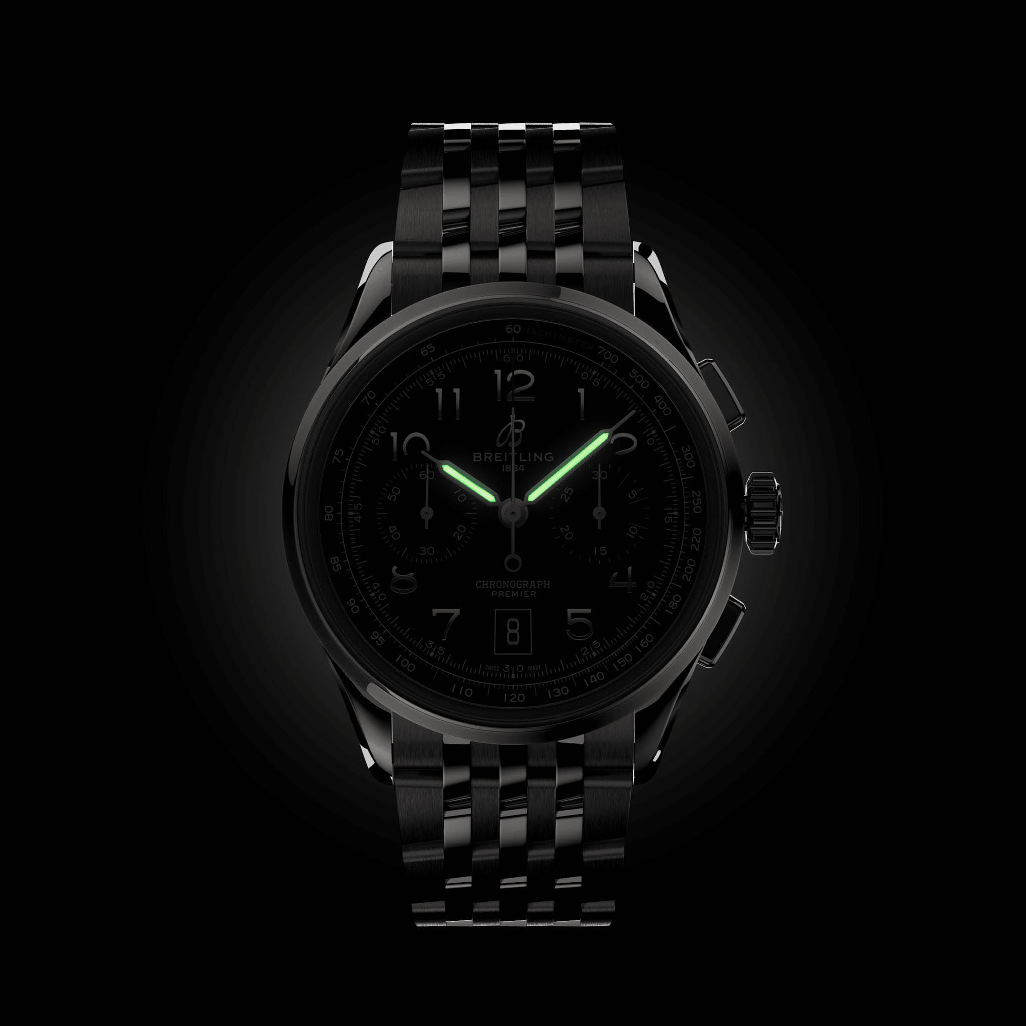 Мужские швейцарские часы-хронографХронографФункция позволяет измерять отрезки времени с особой точностью: часы, минуты, секунды. Верным признаком хронографа является наличие на циферблате 3 дополнительных окошек-счётчиков. с тахиметромТахиметрРазмеченная шкала, располагается на ободке или безеле часов. Тахиметр позволяет рассчитать скорость на определённом участке пути, расстояние измеряется в километрах или милях. Breitling Premier B01 Chronograph 42 AB0145221B1A1, механический механизм (автоматический калибр) с высокой точностью. Сапфировое стеклоСапфировое стеклоПрочный и надёжный материал из кристалла сапфира синтетического происхождения, характеризующийся особой твёрдостью и устойчивостью к царапинам и повреждениям. с антибликовым покрытием устойчивое к появлению царапин, обладающее высокой прозрачностью. Класс водозащиты: 100 метров, позволит плавать, нырять и заниматься другими водными видами спорта. Корпус часов изготовлен из стали. Стальной браслет с застёжкой-бабочкой с кнопкамиЗастёжка "бабочка"Такой вид застёжки дополняется предохранителями, помогающими избежать случайного раскрытия браслета. Обладают изящным исполнением. . Стрелки с люминесцентным покрытиемЛюминесцентное покрытиеПозволяет считывать показания времени в темноте. Производители наносят на стрелки, часовые индексы, безель или поверхность циферблата светонакопительный состав, дающий холодное свечение.. Окошко даты находится в положении 6 часов. СекундомерСекундомерСекундоме́р — прибор, способный измерять интервалы времени с точностью до долей секунды..