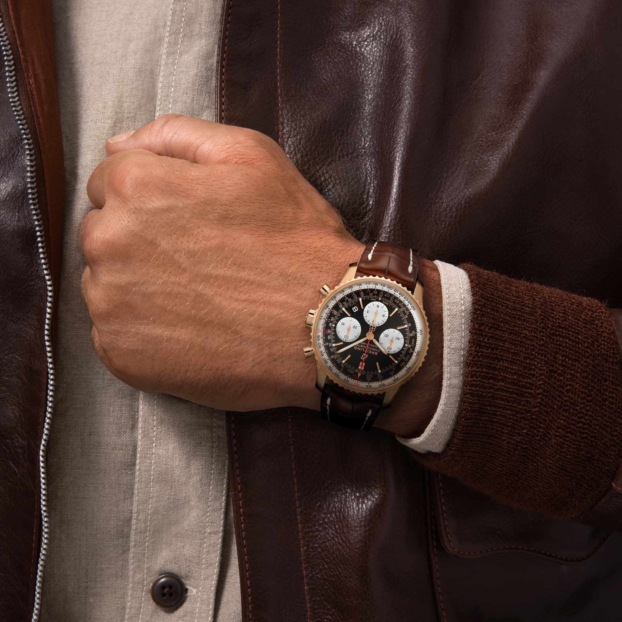 Модель Navitimer 1 B01 Chronograph в 43-миллиметровом корпусе воплощает собой техническое и эстетическое совершенство и является излюбленным инструментом профессиональных пилотов и авиаторов-любителей с 1952 года.
