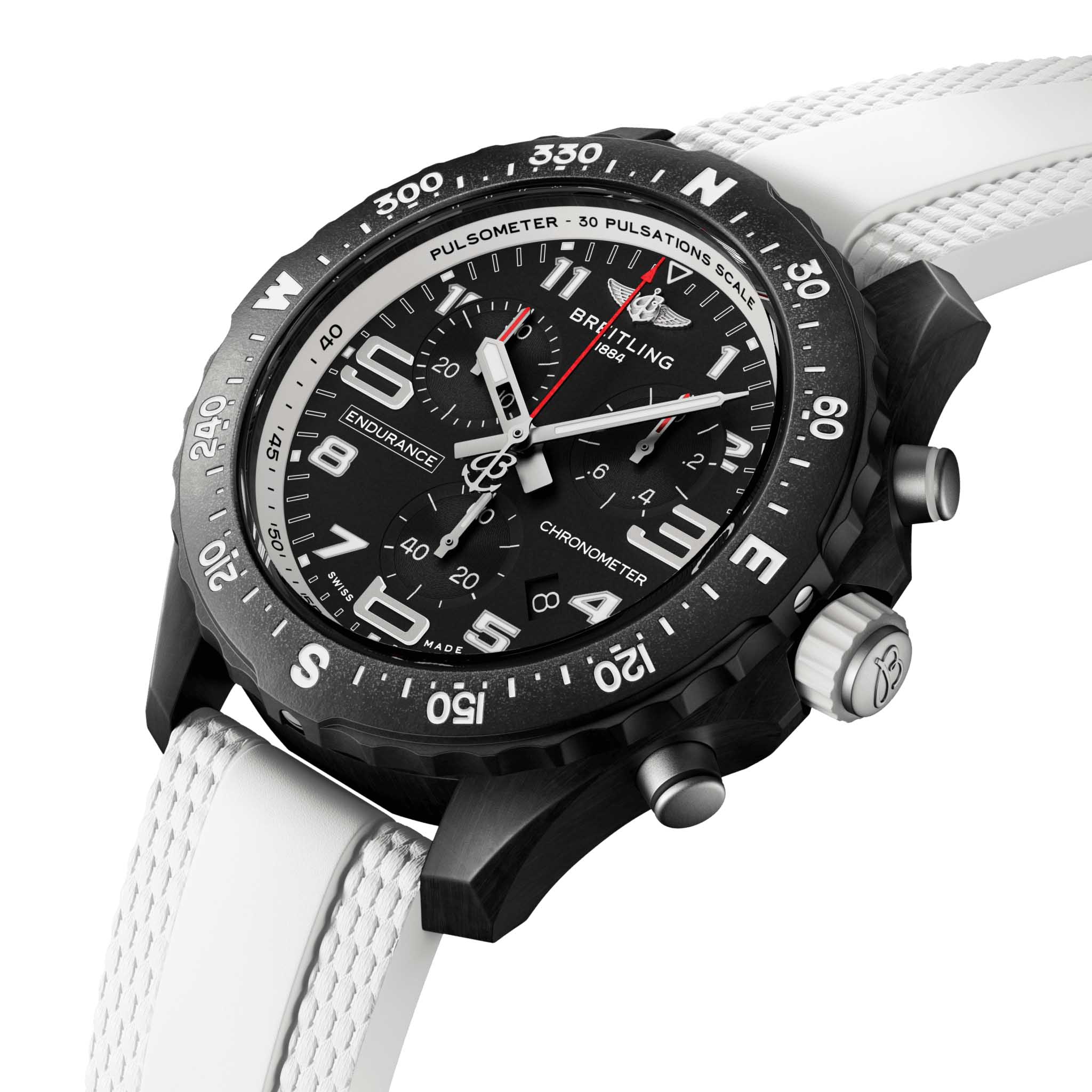 Материал корпуса Breitlight® – прочный сверхлегкий полимер, вес которого в 3,3 раза меньше, чем у титана, и в 5,8 раза меньше, чем у нержавеющей стали. Термически стабильный и гипоаллергенный материал Breitlight® обладает низкой магнитной восприимчивостью, а также высокой стойкостью к царапинам, износу и коррозии. Белый каучуковый браслет с двойной классической застежкой из материала Breitlight®.