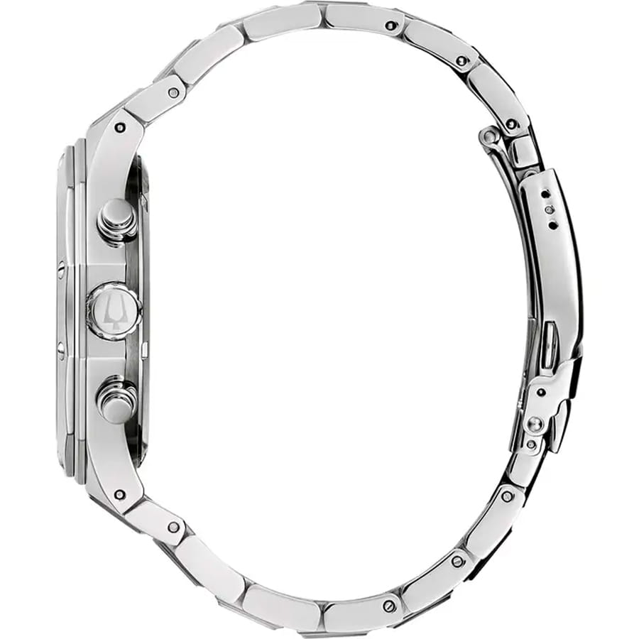 Мужские кварцевые часы-хронографХронографФункция позволяет измерять отрезки времени с особой точностью: часы, минуты, секунды. Верным признаком хронографа является наличие на циферблате 3 дополнительных окошек-счётчиков. Bulova Classic 96B408 – отражающий идеальное сочетание современного дизайна, надёжности и функциональности. Элегантный облик станет превосходным завершением образа, наделив его индивидуальным характером. Корпус из нержавеющей стали, диаметром 44 мм идеально сбалансирован и элегантен. Минеральное стеклоМинеральное стеклоМинеральное стекло представляет собой искусственно выращенный минерал кварца. Такое стекло отличается особой устойчивостью к повреждениям и царапинам. Уступает по некоторым качествам сапфировому стеклу. защищает циферблат от царапин и устойчивое к мелким механическим повреждениям. Шкала тахиметраТахиметрРазмеченная шкала, располагается на ободке или безеле часов. Тахиметр позволяет рассчитать скорость на определённом участке пути, расстояние измеряется в километрах или милях. на циферблате. Стальной браслет на раскладной застёжкеРаскладная застёжкаТакой тип застёжки используется только на браслетах из металла. Она никогда не раскрывается полностью, происходит разделение на 2 и более частей. Раскладывающая застёжка снизит вероятность потери часов к минимуму. обеспечивает комфортное ношение. Стрелки и метки с люминесцентным покрытиемЛюминесцентное покрытиеПозволяет считывать показания времени в темноте. Производители наносят на стрелки, часовые индексы, безель или поверхность циферблата светонакопительный состав, дающий холодное свечение. позволяющие легко определять время даже в темноте. Водозащита 100 метров, позволит плавать, нырять и заниматься другими водными видами спорта. Окошко даты находится в положении между 4 и 5 часов. Эта модель – отличный выбор для тех, кто ищет сочетание стиля, качества и функциональности. Часы станут не только полезным аксессуаром, но и выразительным элементом вашего имиджа.