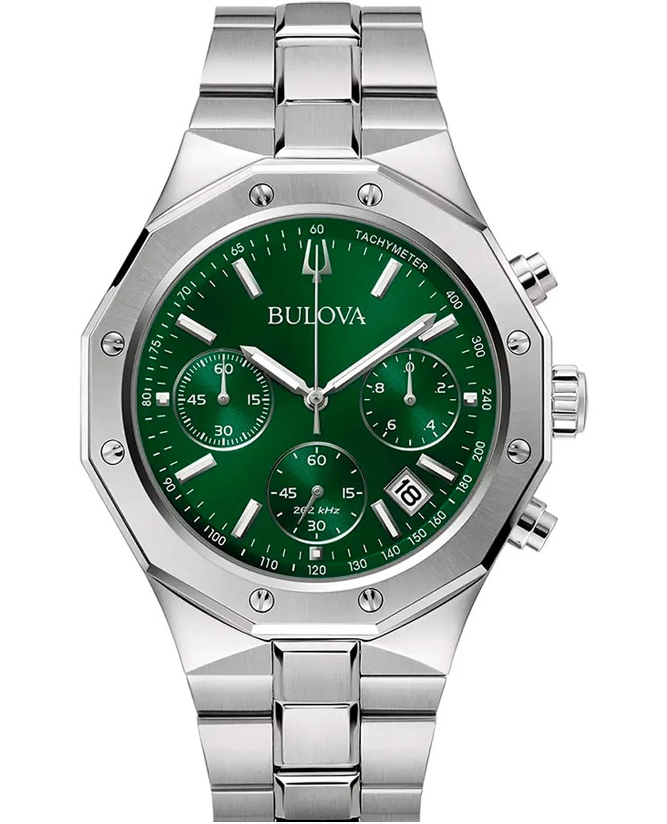 Мужские кварцевые часы-хронографХронографФункция позволяет измерять отрезки времени с особой точностью: часы, минуты, секунды. Верным признаком хронографа является наличие на циферблате 3 дополнительных окошек-счётчиков. Bulova Classic 96B409 – отражающий идеальное сочетание современного дизайна, надёжности и функциональности. Элегантный облик станет превосходным завершением образа, наделив его индивидуальным характером. Корпус из нержавеющей стали, диаметром 44 мм идеально сбалансирован и элегантен. Минеральное стеклоМинеральное стеклоМинеральное стекло представляет собой искусственно выращенный минерал кварца. Такое стекло отличается особой устойчивостью к повреждениям и царапинам. Уступает по некоторым качествам сапфировому стеклу. защищает циферблат от царапин и устойчивое к мелким механическим повреждениям. Шкала тахиметраТахиметрРазмеченная шкала, располагается на ободке или безеле часов. Тахиметр позволяет рассчитать скорость на определённом участке пути, расстояние измеряется в километрах или милях. на циферблате. Стальной браслет на раскладной застёжкеРаскладная застёжкаТакой тип застёжки используется только на браслетах из металла. Она никогда не раскрывается полностью, происходит разделение на 2 и более частей. Раскладывающая застёжка снизит вероятность потери часов к минимуму. обеспечивает комфортное ношение. Стрелки и метки с люминесцентным покрытиемЛюминесцентное покрытиеПозволяет считывать показания времени в темноте. Производители наносят на стрелки, часовые индексы, безель или поверхность циферблата светонакопительный состав, дающий холодное свечение. позволяющие легко определять время даже в темноте. Водозащита 100 метров, позволит плавать, нырять и заниматься другими водными видами спорта. Окошко даты находится в положении между 4 и 5 часов. Эта модель – отличный выбор для тех, кто ищет сочетание стиля, качества и функциональности. Часы станут не только полезным аксессуаром, но и выразительным элементом вашего имиджа.