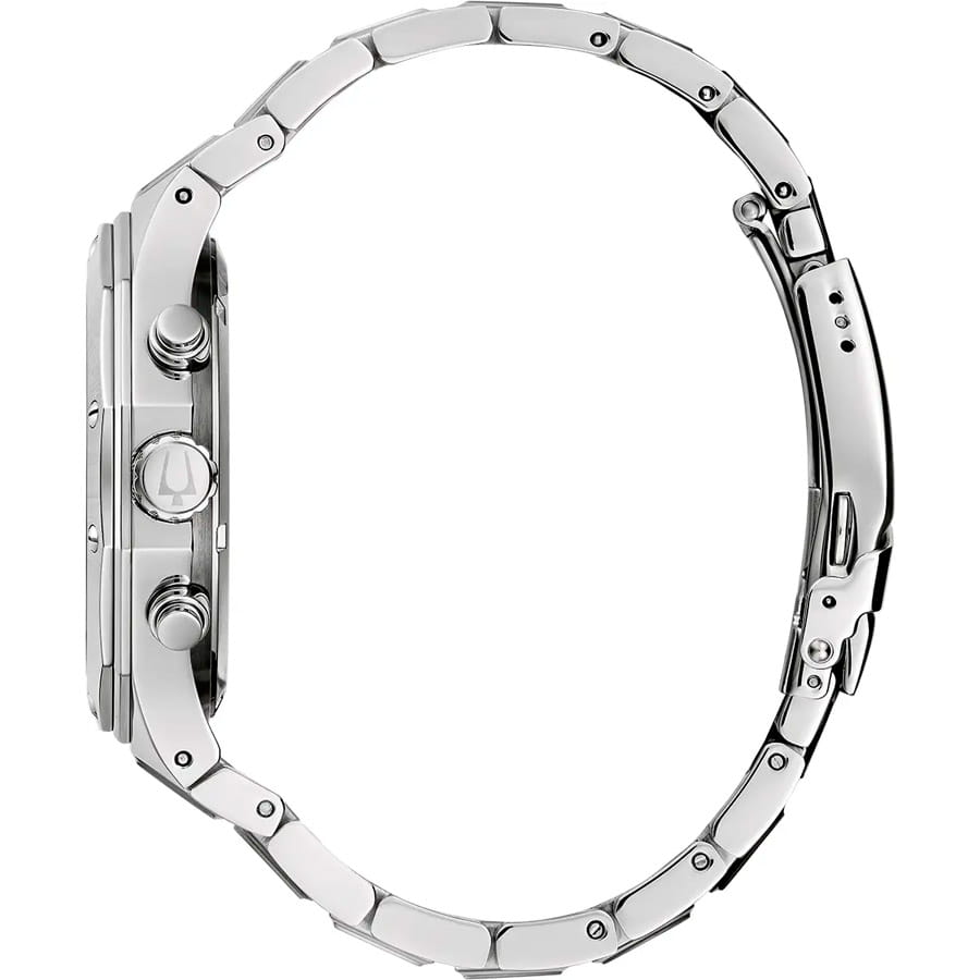 Мужские кварцевые часы-хронографХронографФункция позволяет измерять отрезки времени с особой точностью: часы, минуты, секунды. Верным признаком хронографа является наличие на циферблате 3 дополнительных окошек-счётчиков. Bulova Classic 96B410  – отражающий идеальное сочетание современного дизайна, надёжности и функциональности. Элегантный облик станет превосходным завершением образа, наделив его индивидуальным характером. Корпус из нержавеющей стали, диаметром 44 мм идеально сбалансирован и элегантен. Минеральное стеклоМинеральное стеклоМинеральное стекло представляет собой искусственно выращенный минерал кварца. Такое стекло отличается особой устойчивостью к повреждениям и царапинам. Уступает по некоторым качествам сапфировому стеклу. защищает циферблат от царапин и устойчивое к мелким механическим повреждениям. Шкала тахиметраТахиметрРазмеченная шкала, располагается на ободке или безеле часов. Тахиметр позволяет рассчитать скорость на определённом участке пути, расстояние измеряется в километрах или милях. на циферблате. Стальной браслет на раскладной застёжкеРаскладная застёжкаТакой тип застёжки используется только на браслетах из металла. Она никогда не раскрывается полностью, происходит разделение на 2 и более частей. Раскладывающая застёжка снизит вероятность потери часов к минимуму. обеспечивает комфортное ношение. Стрелки и метки с люминесцентным покрытиемЛюминесцентное покрытиеПозволяет считывать показания времени в темноте. Производители наносят на стрелки, часовые индексы, безель или поверхность циферблата светонакопительный состав, дающий холодное свечение. позволяющие легко определять время даже в темноте. Водозащита 100 метров, позволит плавать, нырять и заниматься другими водными видами спорта. Окошко даты находится в положении между 4 и 5 часов. Эта модель – отличный выбор для тех, кто ищет сочетание стиля, качества и функциональности. Часы станут не только полезным аксессуаром, но и выразительным элементом вашего имиджа.