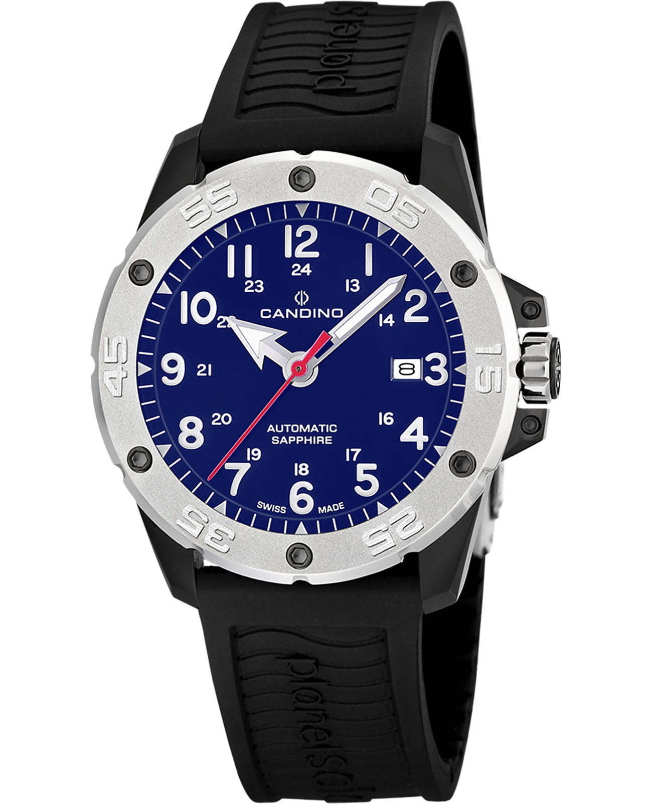 Швейцарские часы Candino C4474/6 — это стильный и надежный аксессуар для мужчин, который идеально сочетает в себе передовые технологии и элегантный дизайн. Корпус с PVD-покрытиемPVDУльтратонкое покрытие наносится в технике вакуумного напыления, сочетает в себе нитрид титана особой прочности со слоем золота или оксида хрома. Несёт в себе декоративную или защитную функцию. и безельБезельВнешний ободок, закрепляющий стекло. В спортивных часах так называется поворотное кольцо с делениями на циферблате, выполняет роль таймера – замеряет отрезки времени на шкале. Неподвижный безель – элемент декора. Однонаправленно вращающийся безель на дайверских часах позволяет фиксировать моменты погружения и выныривания на поверхность. из нержавеющей стали в сочетании с каучуковым черным ремешком на раскладной застёжкеРаскладная застёжкаТакой тип застёжки используется только на браслетах из металла. Она никогда не раскрывается полностью, происходит разделение на 2 и более частей. Раскладывающая застёжка снизит вероятность потери часов к минимуму. придает им современный и динамичный вид. Механизм с автоподзаводом обеспечивает бесперебойную работу, а защищает синий циферблат сапфировое стеклоСапфировое стеклоПрочный и надёжный материал из кристалла сапфира синтетического происхождения, характеризующийся особой твёрдостью и устойчивостью к царапинам и повреждениям. гарантирует повышенную защиту от царапин. Стрелки с люминесцентным покрытиемЛюминесцентное покрытиеПозволяет считывать показания времени в темноте. Производители наносят на стрелки, часовые индексы, безель или поверхность циферблата светонакопительный состав, дающий холодное свечение. облегчают чтение времени даже в условиях слабого освещения. Окошко даты находится в положении 3 часа. Благодаря водозащите до 200 метров, эти часы будут надежным спутником как в повседневной жизни, так и в активных приключениях.