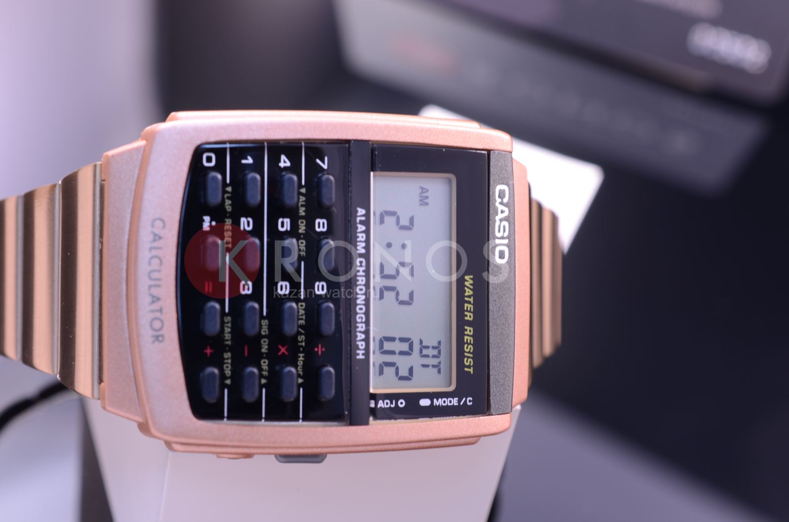Стильный корпус и браслет окрашены в цвет розового золота. Есть 8-ми разрядный калькулятор. Мировое времяМировое время Полезное часовое усложнение, отображающее время в основных городах и известных областях по всему миру, оно связано с часовыми поясами, удобно для путешественников и бизнесменов. поможет быть на связи со второй часовой зоной. Пластиковое стекло надежно защищает аксессуар от повреждений. Время отображается в 12- и 24-часовом форматах.
