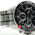 Аксессуар с чёрным циферблатом имеет серебристые элементы дизайна, общее оформление навеяно автомобильной тематикой. Секундная стрелка с красным наконечником улучшает читаемость показателей. Надёжные часы с закручивающейся задней крышкой оснащены кварцевым механизмом с точностью хода +/- 30 секунд в месяц. Корпус и браслет из хирургической стали 316L. БезельБезельВнешний ободок, закрепляющий стекло. В спортивных часах так называется поворотное кольцо с делениями на циферблате, выполняет роль таймера – замеряет отрезки времени на шкале. Неподвижный безель – элемент декора. Однонаправленно вращающийся безель на дайверских часах позволяет фиксировать моменты погружения и выныривания на поверхность. с чёрным IP-покрытиемIP-покрытиеМетод ионного напыления. Демонстрирует повышенную устойчивость к истиранию, окислению и химическим веществам. Под воздействием высокого давления и температуры около 1500°C молекулы металла надёжно соединяются с частицами корпуса часов.. Водостойкость до 10 бар. Люминесцентная подсветкаЛюминесцентное покрытиеПозволяет считывать показания времени в темноте. Производители наносят на стрелки, часовые индексы, безель или поверхность циферблата светонакопительный состав, дающий холодное свечение. Neobrite. ХронографХронографФункция позволяет измерять отрезки времени с особой точностью: часы, минуты, секунды. Верным признаком хронографа является наличие на циферблате 3 дополнительных окошек-счётчиков., секундомер, апертура даты. Габариты: 53 x 47 x 12,3 мм.