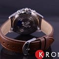 Кварцевый японский механизм Miyota. Точность хода не хуже -10 +15 сек./в месяц. Часы оснащены функцией хронографа, с точностью 1/10с и временем измерения 1ч. Циферблат бежевого цвета с контрастными элементами дизайна. Стрелки и индексы с светонакопительным нанесением. Корпус выполнен из нержавеющей стали. Ремешок из натуральной кожи коричневого цвета. Минеральное стекло устойчиво к появлению царапин. Водонепроницаемость 100М. В часах можно плавать. Степень водонепроницаемости не является величиной, эквивалентной функциональной рабочей глубине.