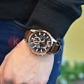 Стильные японские наручные кварцевые мужские часы. Круглый корпус часов выполнен из стали с антикоррозийными свойствами с IP покрытием. Коричневый карбоновый циферблат с контрастными элементами дизайна. Водонепроницаемость 10 ATM. Минеральное стекло, устойчивое к появлению царапин. Ремешок из натуральной кожи коричневого цвета. Часы оснащены функцией хронографа.