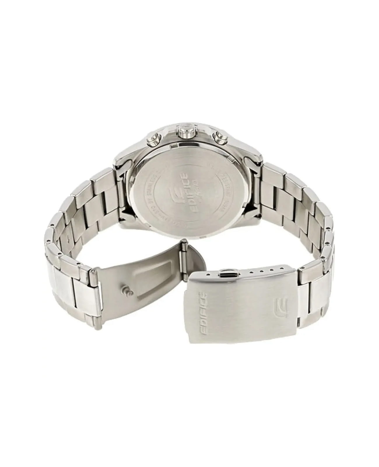 Японские мужские часы-хронографХронографФункция позволяет измерять отрезки времени с особой точностью: часы, минуты, секунды. Верным признаком хронографа является наличие на циферблате 3 дополнительных окошек-счётчиков. Casio Edifice EFV-570D-2A. Минеральное стеклоМинеральное стеклоМинеральное стекло представляет собой искусственно выращенный минерал кварца. Такое стекло отличается особой устойчивостью к повреждениям и царапинам. Уступает по некоторым качествам сапфировому стеклу. устойчивое к появлению царапин, обладающее высокой прозрачностью. Копрус часов изготовлен из нержавеющей стали. БезельБезельВнешний ободок, закрепляющий стекло. В спортивных часах так называется поворотное кольцо с делениями на циферблате, выполняет роль таймера – замеряет отрезки времени на шкале. Неподвижный безель – элемент декора. Однонаправленно вращающийся безель на дайверских часах позволяет фиксировать моменты погружения и выныривания на поверхность. из стали с IP-покрытиемIP-покрытиеМетод ионного напыления. Демонстрирует повышенную устойчивость к истиранию, окислению и химическим веществам. Под воздействием высокого давления и температуры около 1500°C молекулы металла надёжно соединяются с частицами корпуса часов.. Светодиодная автоподсветка NeobriteПодсветка NeobriteИспользование светонакопительных составов на основе сульфида цинка или алюмината стронция, яркий свет можно наблюдать на протяжении 6-10 часов после «зарядки» часов около источника света. - при повороте часов в сторону лица подсветка дисплея осуществляется автоматически. Настраиваемое послесвечение 1,5 или 3сек. Записная книжка на 30 ячеек памяти для записи имен и телефонных номеров, каждая запись может включать в себя текст из 8 букв и 16 цифр. СекундомерСекундомерСекундоме́р — прибор, способный измерять интервалы времени с точностью до долей секунды. с точностью измерения 1/100 секунды и измерением до 23 часов 59 минут 59,99 cек. ТаймерТаймерОтсчитывает секунды в обратном направлении в заданном интервале времени. обратного отсчета (диапазон времени 24 часа), автоматический календарь, 12/24 отображение времени. Мировое времяМировое время Полезное часовое усложнение, отображающее время в основных городах и известных областях по всему миру, оно связано с часовыми поясами, удобно для путешественников и бизнесменов. – 30 городов (29 часовых поясов). 5 будильниковБудильникБуди́льник — часы, в заданный момент времени подающие звуковой, световой и/или в редких случаях другой сигнал., один с функцией Snooze, ежечасный сигнал. Класс водозащиты: 100 метров, позволит плавать, нырять и заниматься другими водными видами спорта. Стальной браслет на раскладной застёжкеРаскладная застёжкаТакой тип застёжки используется только на браслетах из металла. Она никогда не раскрывается полностью, происходит разделение на 2 и более частей. Раскладывающая застёжка снизит вероятность потери часов к минимуму..