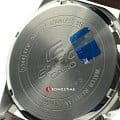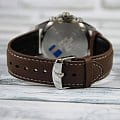 Синий циферблат с серебристыми и красными элементами дизайна выглядит смело и брутально, модель станет отличным вариантом для завершения повседневного образа. В основе кварцевого механизма находится мощная батарейка, эксплуатационный срок которой составляет 2 года. Ударопрочный корпусУдаропрочный корпусМеханизм заключён в корпус, выполненный из современных материалов, устойчивых к ударам, механическим повреждениям и падению с высоты: инновационный пластик, карбон, нержавеющая сталь, титан. выполнен из хирургической стали 316L, безельБезельВнешний ободок, закрепляющий стекло. В спортивных часах так называется поворотное кольцо с делениями на циферблате, выполняет роль таймера – замеряет отрезки времени на шкале. Неподвижный безель – элемент декора. Однонаправленно вращающийся безель на дайверских часах позволяет фиксировать моменты погружения и выныривания на поверхность. имеет цветное IP-покрытиеIP-покрытиеМетод ионного напыления. Демонстрирует повышенную устойчивость к истиранию, окислению и химическим веществам. Под воздействием высокого давления и температуры около 1500°C молекулы металла надёжно соединяются с частицами корпуса часов.. Минеральное стекло устойчиво к царапинам. Водозащита 100 метров. Люминесцентная подсветкаЛюминесцентное покрытиеПозволяет считывать показания времени в темноте. Производители наносят на стрелки, часовые индексы, безель или поверхность циферблата светонакопительный состав, дающий холодное свечение.. Ремешок из натуральной кожи. Секундомер, хронографХронографФункция позволяет измерять отрезки времени с особой точностью: часы, минуты, секунды. Верным признаком хронографа является наличие на циферблате 3 дополнительных окошек-счётчиков., индикация даты. Габариты: 48,5 x 43,8 x 11,6 мм.