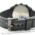 Лаконичный чёрный циферблат с оригинальным узором счётчиков имеет яркие красные акценты в виде секундной стрелки и элементе миниатюрного окошка на позиции 9 часов. Крупные стрелки обладают люминесцентным покрытиемЛюминесцентное покрытиеПозволяет считывать показания времени в темноте. Производители наносят на стрелки, часовые индексы, безель или поверхность циферблата светонакопительный состав, дающий холодное свечение., позволяющим без затруднений использовать часы в темноте. Ремешок из полимерного материала надёжно обхватывает запястье, отличается гибкостью и неприхотливостью в уходе. Минеральное стекло. Отображение текущего числа. Габариты: 50,6 x 44 x 11,2 мм.