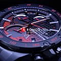 Чёрно-красный градиент навевает мысли о моменте зажигания искрой топлива в цилиндре двигателя, шахматный узор напоминает стартовый флаг. Корпус и браслет имеют ионное IP-покрытие, повышающее долговечность материала. Технология BluetoothBluetoothСовременная технология, позволяющая синхронизировать часы с телефоном и переносить данные. Часы с Bluetooth расширяют возможности вашего смартфона и делают его использование ещё более удобным. позволяет синхронизировать данные со смартфоном. Ультратонкий корпус 8,9 мм. Индикатор заряда батареи. Люминесцентная подсветкаЛюминесцентное покрытиеПозволяет считывать показания времени в темноте. Производители наносят на стрелки, часовые индексы, безель или поверхность циферблата светонакопительный состав, дающий холодное свечение.. Водонепроницаемость при давлении 10 бар. Стекло с антибликовым покрытием. ХронографХронографФункция позволяет измерять отрезки времени с особой точностью: часы, минуты, секунды. Верным признаком хронографа является наличие на циферблате 3 дополнительных окошек-счётчиков., секундомер, индикация числа, будильник, мировое времяМировое время Полезное часовое усложнение, отображающее время в основных городах и известных областях по всему миру, оно связано с часовыми поясами, удобно для путешественников и бизнесменов. . Габариты: 49,9 x 45,6 x 8,9 мм.